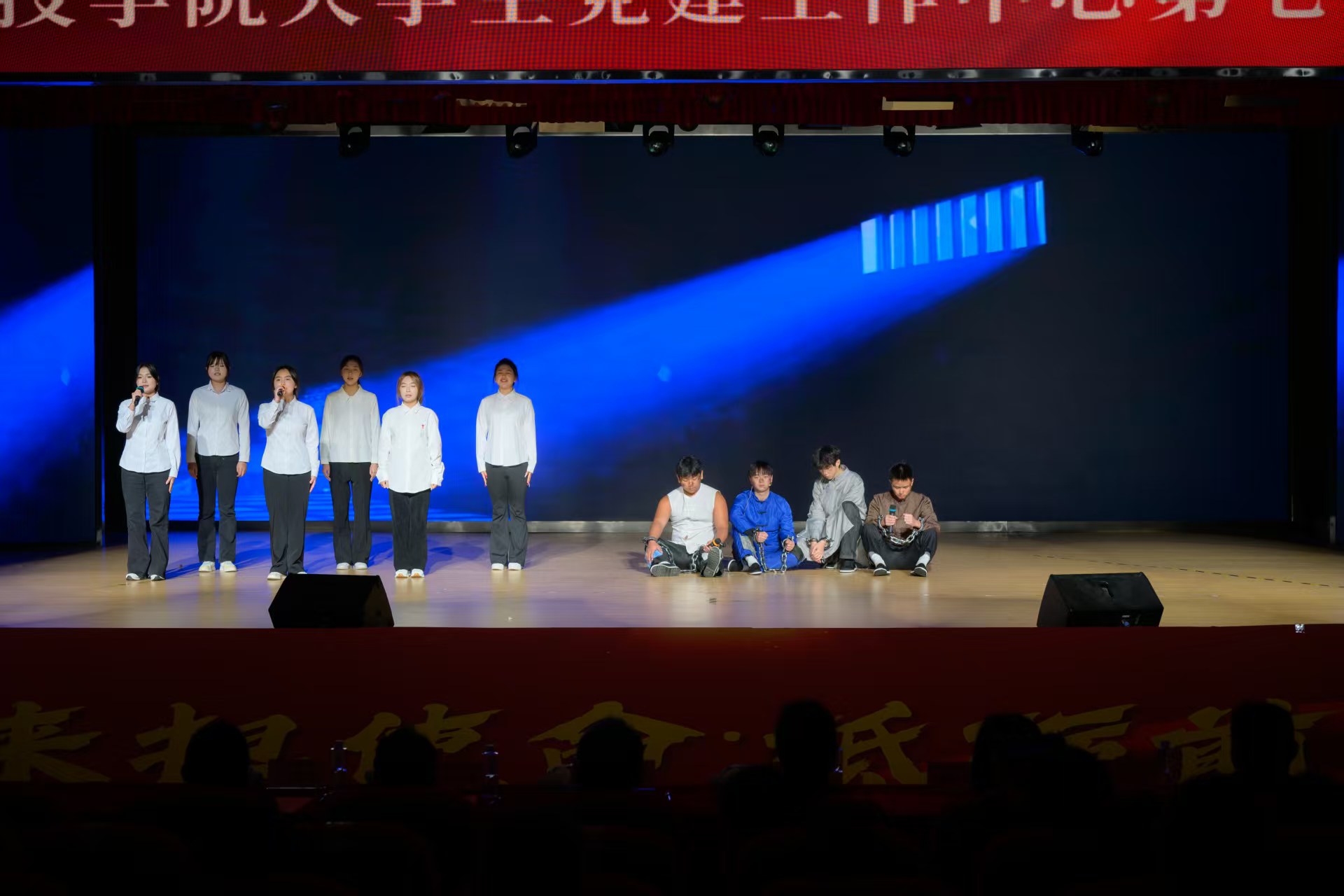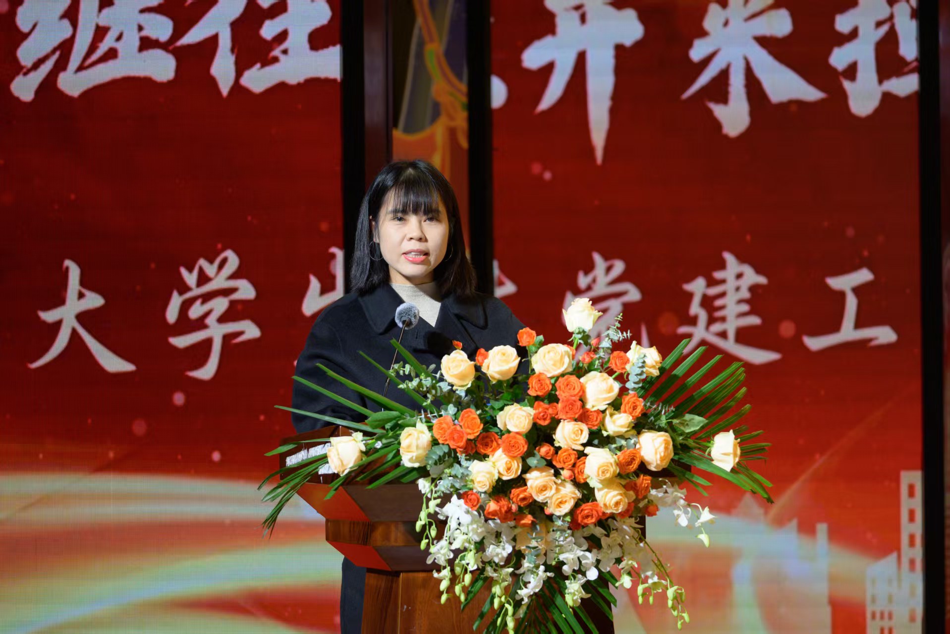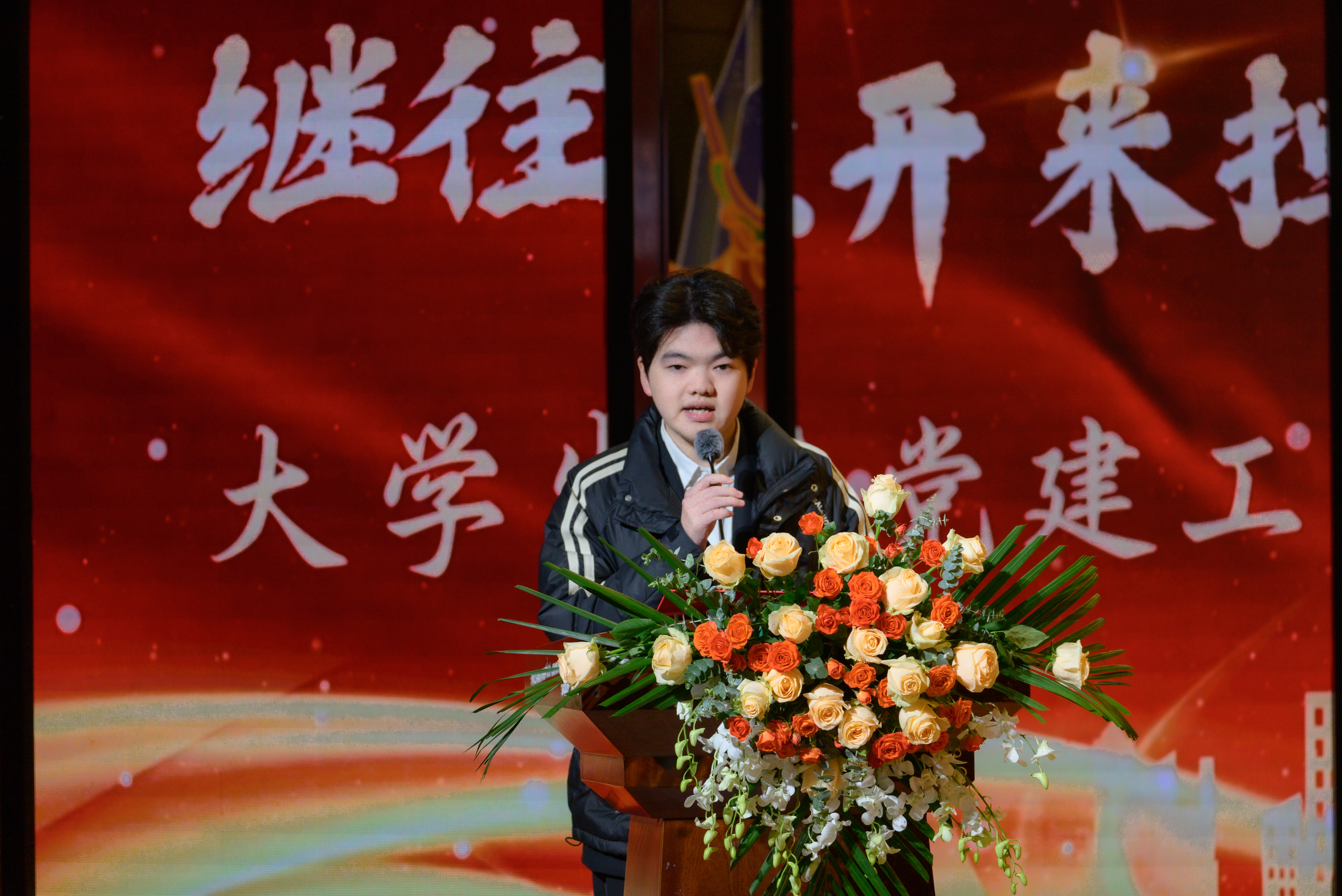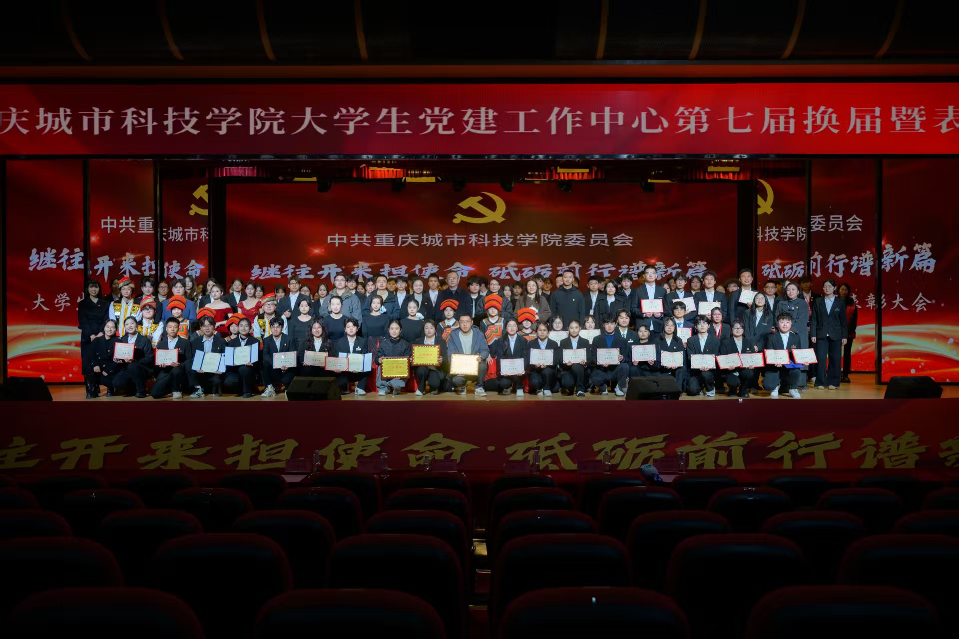 为进一步加强大学生党建工作中心队伍建设,传承红色基因,凝聚青春力量,确保工作平稳有序衔接、持续高效推进。2025年12月16日,beat365官方网站第七届大学生党建工作中心(以下简称中心)换届暨表彰大会于永川校区第一报告厅开展。学校党委书记、政府督导专员王银峰,学校党委宣传部部长彭晓,学校党委组织部部长刘茜,马克思主义学院党总支副书记涂佳,经济管理学院党总支副书记周德顺,艺术与传媒学院党总支副书记宾光勇,中心及各分中心指导老师,全体中心成员及各分中心学生代表参加本次大会。此次大会由张爽,李文博,曹溢淋,张晓雅主持。 第一篇章 薪火赓续 青春筑梦 一、奏唱《国歌》 大会伊始,全体起立奏唱《中华人民共和国国歌》 二、领导致辞 大会第二项议程,由党委宣传部部长彭晓为本次大会致辞,他勉励中心及各分中心成员,要以奋进之姿勇担时代使命,在城科的沃土上绽放青春芳华,向着崇高理想与奋斗目标笃定前行;要秉持实干笃行的精神,深耕学习与工作岗位,以创新实践赋能工作提质增效,切实履行服务中心发展的职责,真正做到以知促行、以行践知。 三、观看《2024-2025学年工作回顾》 四、第七届中心骨干代表发言 大会第四项议程,由第七届中心骨干代表韩贵川发言,他回顾了第七届中心成员在理论学习、实践服务、自身建设等方面的成果,分享了以坚守初心、服务师生、团队协作、创新实干为核心的经验。表达了对第八届成员的殷切期望,勉励新一届成员接续奋斗,为学校发展贡献力量,并送上了美好祝福。 五、为第七届中心骨干代表颁发聘书 随后,中心指导老师马煦玥为大学生党建工作中心第七届干部颁发聘书,一份份聘书,不仅是肩上的责任,更凝聚着对中心干部们辛勤付出的肯定与赞誉。 往昔耕耘结硕果,未来逐梦启新程。由衷祝贺大学生党建工作中心及全体成员过往所取得的优异成绩,也向他们的不懈努力与无私奉献致以诚挚的感谢。 六、宣读《2024-2025学年优秀工作 者的表彰文件》 大会第六项议程,由大学生党建工作中心指导老师冯梅宣读《2024-2025学年优秀工作者的表彰文件》。 七、为优秀工作者和先进集体颁奖 艺术与传媒学院党总支副书记 宾光勇 为学习标兵颁奖 艺术与传媒学院党总支副书记 宾光勇 为优秀干事颁奖 经济管理学院党总支副书记 周德顺 为优秀干事颁奖 经济管理学院党总支副书记 周德顺 为优秀干部颁奖 马克思主义学院党总支副书记 涂佳 为优秀干部颁奖 马克思主义学院党总支副书记 涂佳 为优秀部门颁奖 学校党委书记、政府督导专员 王银峰 为先进集体颁奖 八、节目《玉盘》 由中心成员带来的《玉盘》,《玉盘》传递着中华民族古今一脉的求索精神,彰显家国雄心与逐梦热忱,展示了传统与现代融合、童真与宏大共鸣的文化传承与时代力量。 第二篇章 初心如炬 再谱华章 九、宣读《新任干部任命文件》 大学生党建工作中心指导老师易建平宣读《新任干部任命文件》,一纸任命,承载使命;一份职责,凝聚担当。愿第八届大学生党建工作中心全体成员,承续初心、笃行不怠,共同书写中心发展的崭新篇章。 十、新老干部授牌仪式 随后,由第七届干部为第八届干部授予工作牌、交接中心旗帜。这一交一接,既传递着上一届全体成员的期盼,也意味着新一届干部正式扛起了中心的工作责任。 十一、观看第八届风采创意视频 十二、第八届中心骨干代表发言 大会第十二项议程。由第八届中心主任袁晓琴发言。袁晓琴同学代表全体中心成员庄严承诺,将始终坚守加入中心的初心使命,永葆对大学生党建工作的热忱,以高标准严格要求自我,持续精进学识本领,以乐观坚韧的态度直面挑战、勇克难关。 十三、情景剧《革命之精神》 紧接着,由体育大健康学院同学带来情景剧表演—《革命之精神》,革命烈士以“舍生取义”的信仰,畅想家国光明未来,诠释共产党人“道之所在,虽千万人吾往矣”的使命,传承革命精神。 十四、领导总结讲话 最后一项议程,由学校党委组织部部长刘茜为本次换届暨表彰大会作总结讲话。刘部长对本次大会的圆满成功表示热烈祝贺,向深耕学校党务工作一线的指导老师致以崇高敬意,并向接过重任的第八届成员送上诚挚祝贺与殷切期待。回顾2024-2025学年,第七届成员在思想引领、组织建设、实践服务等领域深耕实干,以每月“理论学习会”浸润青年思想,以严谨细致的态度落实各项工作任务,以丰富多样的活动凝聚青春力量,交出了一份亮眼的答卷。刘部长强调,换届是薪火相传的纽带,青年骨干要扛起时代重任,锚定新时代青年的使命任务与责任担当,立足青年思想特点创新工作形式,善用新媒体平台扩大工作覆盖面与影响力,以理想信念为帆,以实干担当为桨,为中华民族复兴贡献青春力量。 大学生党建工作中心第七届换届暨表彰大会圆满结束! 文稿来源:钟宏鑫 梁红梅 照片来源:罗婷 梁红梅 潘芊宇 郭雨欣 石运红 刘雯莉 唐铭尉 杨锦灿 视频来源:钟宏鑫 陈妍 唐啸 夏宇潇 陶嘉辉 阳雨杉 邓佳欣 石运红 编辑:朱江玲 阳雨杉 审核:党委组织部