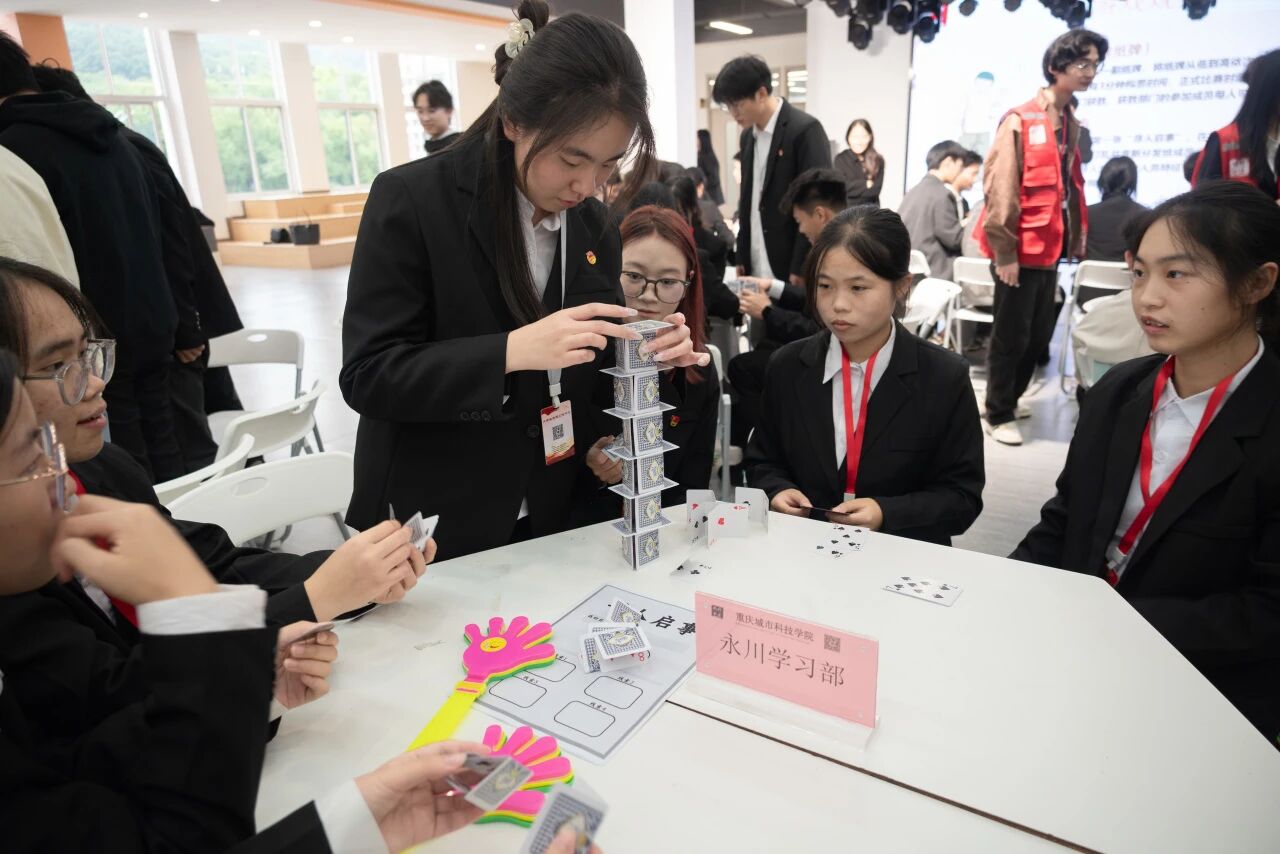 为推动大学生党建工作中心新老成员高效互动、紧密合作,夯实中心组织建设,强化成员集体归属感与团队凝聚力,大学生党建工作中心(以下简称“中心”)11月5日于永川校区主教112室举行第八届大学生党建工作中心新老成员见面会,随后全体转场到一食堂三楼大学生活动中心举办破冰活动。中心指导老师易建平、冯梅、马煦玥及第八届全体成员参加本次活动。本次见面会由李文博同学主持,破冰活动由张爽同学主持。 第一环节:见面会 活动伊始,主持人向在场师生致以诚挚问候,并依次介绍到场的中心指导老师。 会议第一项议程由中心指导老师马煦玥致开场词,她以“冬意相聚”为引,向第八届新成员表示热烈欢迎,向坚守奉献的老成员致以诚挚感谢,并回顾中心在“一校两区”格局下,通过多元活动锤炼成员党性、助力学校党建发展的历程。同时,她从“以学铸魂”“服务赋能”“创新提质”三方面提出期望,鼓励全体成员践行青春誓言,共创中心佳绩,最后送上美好祝愿。 紧接着,全体成员一同观看了中心第七届工作回顾视频。一幕幕鲜活的场景历历在目,瞬间拉近了彼此的距离,让大家深深体会到团队的凝聚力与温情。视频里,既有中心成员们工作时的全神贯注与奋勇争先,也记录了他们生活中的欢声笑语与温情瞬间。 随后,由中心副主任陶嘉辉介绍中心组织架构和日常运营情况。 接着,由主持人介绍中心各部门骨干及主要职责。每个部门骨干的亮相都伴随着明确的职责介绍,不仅让在场人员清晰了解中心的组织架构与工作分工,更展现出了中心的专业素养与责任担当,为后续各项中心工作的协同推进奠定坚实基础。 见面会最后一项议程,第八届中心主任袁晓琴代表讲话。她回顾了在中心一年多的成长历程,分享了参与活动策划、档案培训、党员档案把控等工作的收获,提及换届大会克服困难圆满完成任务的经历,感慨合作的力量与自身从懵懂到独当一面的蜕变。接着,她感谢老师与中心成员过往的信任支持,承诺新一届干部将以更高标准、更严要求、更实作风推动中心发展,同时呼吁全体成员团结协作、发挥特长,并衷心致谢师生,号召携手开创中心新局面。 最后,主持人宣布见面会圆满结束,与会人员合影留念。 第二环节:破冰活动 活动伊始,新成员依次进行自我介绍,通过分享个人兴趣、专业及对中心的期待,打破陌生壁垒,为后续互动奠定良好基础。 随后进入趣味游戏环节,首个游戏“叠高塔(堆纸牌)”中,各部门成员手持一副纸牌,在3分钟构思时间内讨论策略,10分钟正式比赛时段里默契配合,力求搭建出最高纸牌塔,现场氛围紧张又热烈。 紧接着,“寻人启事”游戏深化了成员间互动:主持人向每人分发卡片,5分钟内填写性格、特长等个人信息;卡片回收打乱后重新分发,成员结合卡片描述,现场寻找主人身份,找到后两人相互进行自我介绍。现场笑声不断,既让大家快速记住彼此特点,也拉近心理距离,强化了团队归属感。 活动最后,主持人宣布活动圆满结束,并组织各部门成员及中心全体人员合影留念,定格下团队初次协作的珍贵瞬间。此次破冰活动不仅让新成员快速熟悉,更增强了团队凝聚力,为中心后续工作的高效开展注入活力。 第三环节:新老干部座谈会第三环节:新老干部座谈会 第七、八届大学生党建工作中心新老干部交流会在一食堂301召开。 第七届干部代表分享了在中心的工作经验与成长心得,他们寄语第八届干部,要始终坚守对党的忠诚与热爱,积极投身中心各项工作,以实际行动为同学们树立榜样、传递正能量。期间,新老干部围绕“如何优化工作流程、提升党建活动实效”展开深入探讨,共同为推动中心工作高质量发展出谋划策。 交流环节结束后,中心指导老师作总结发言,对新一届干部提出四点希望与要求:一是深耕理论,通过系统学习强化思想淬炼,夯实党建工作理论基础;二是凝心聚力,在部门协作与跨校区联动中团结共进,形成工作合力;三是开拓创新,结合新时代大学生特点突破传统工作模式,丰富党建活动形式;四是正身律己,以严格标准筑牢作风建设,展现中心成员的良好风貌。 文稿:梁红梅 卢秋宇 钟宏鑫 照片:郭雨欣 石运红 唐啸 刘雯莉 罗婷 潘芊宇 朱江玲 视频:周静茹 徐丹怡 钟宏鑫 杨佐杰 编辑:候雨佳 刘雯莉 审核:党委组织部
