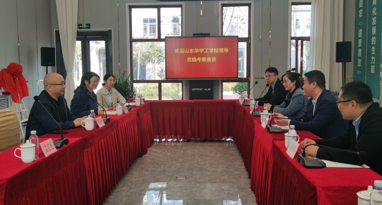 随后,山东百仕达地标产业有限公司部分代表与参会人员开展座谈交流。双方领导介绍了本单位的基本情况,并围绕产学研合作育人、创新创业基地建设等方面进行了广泛交流并达成共识。