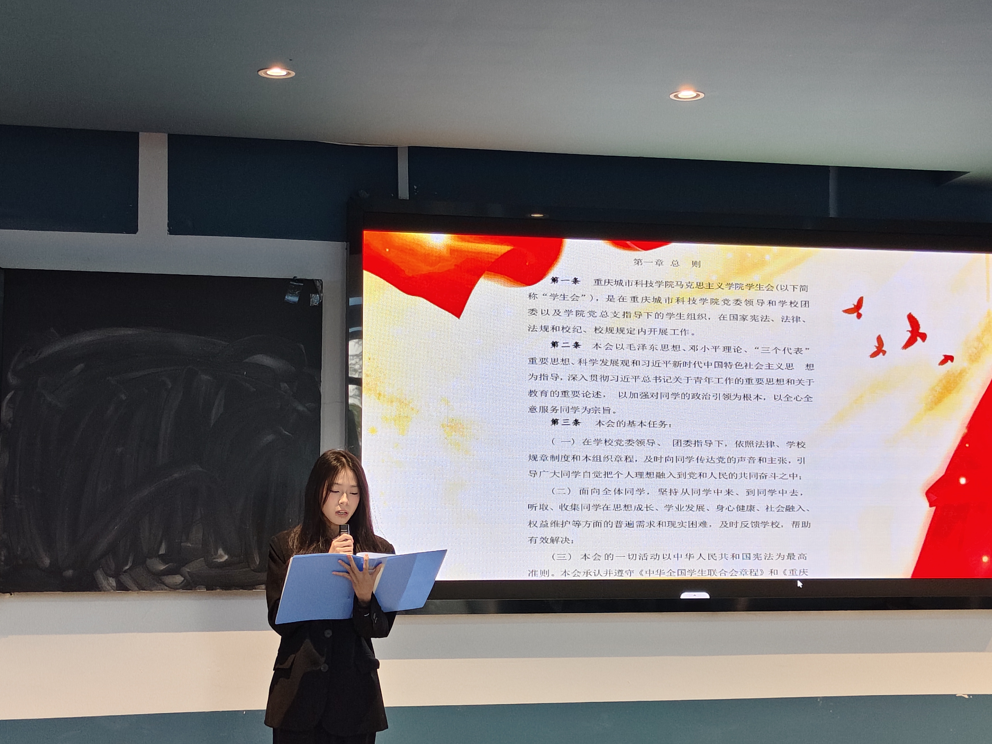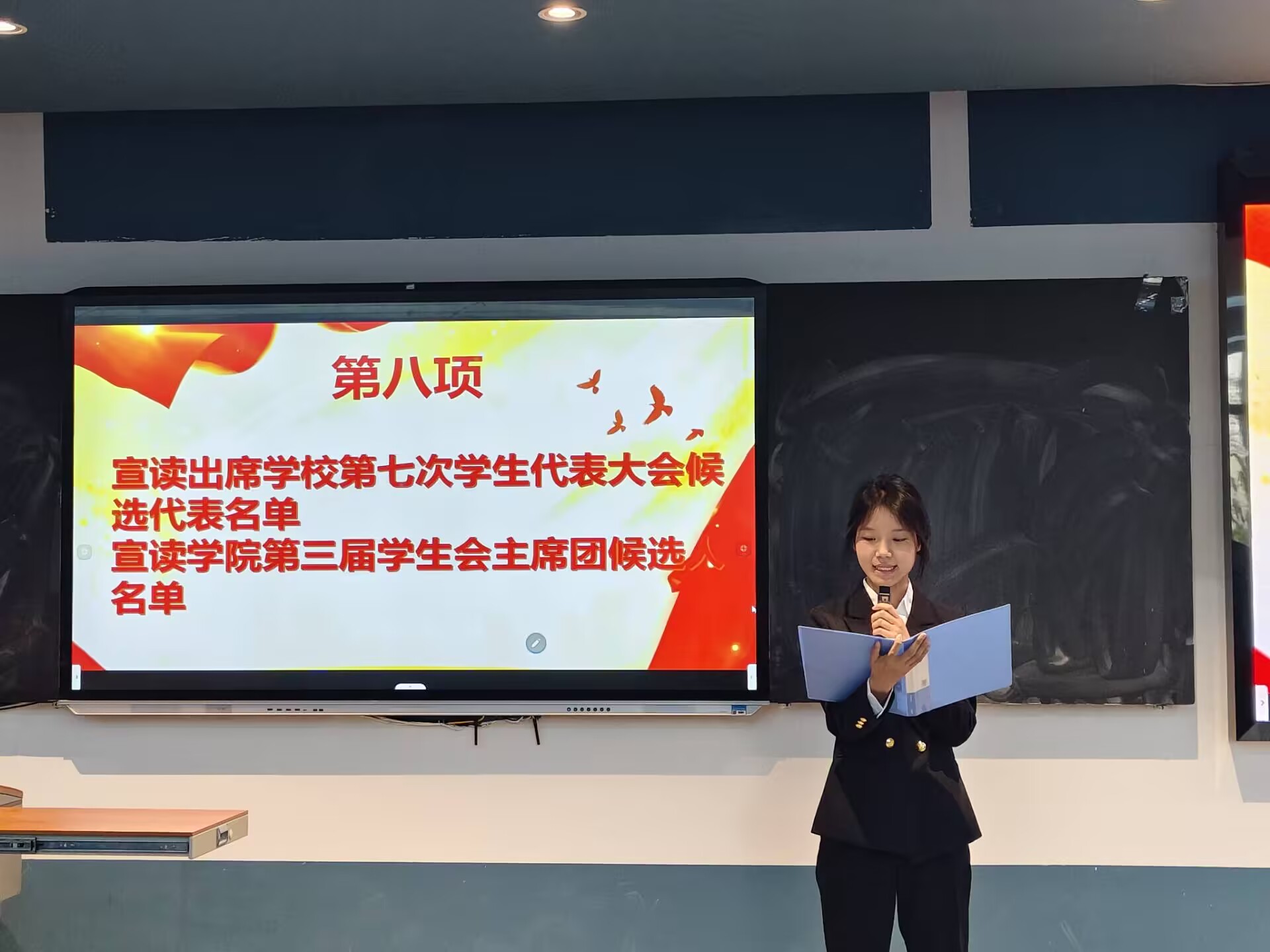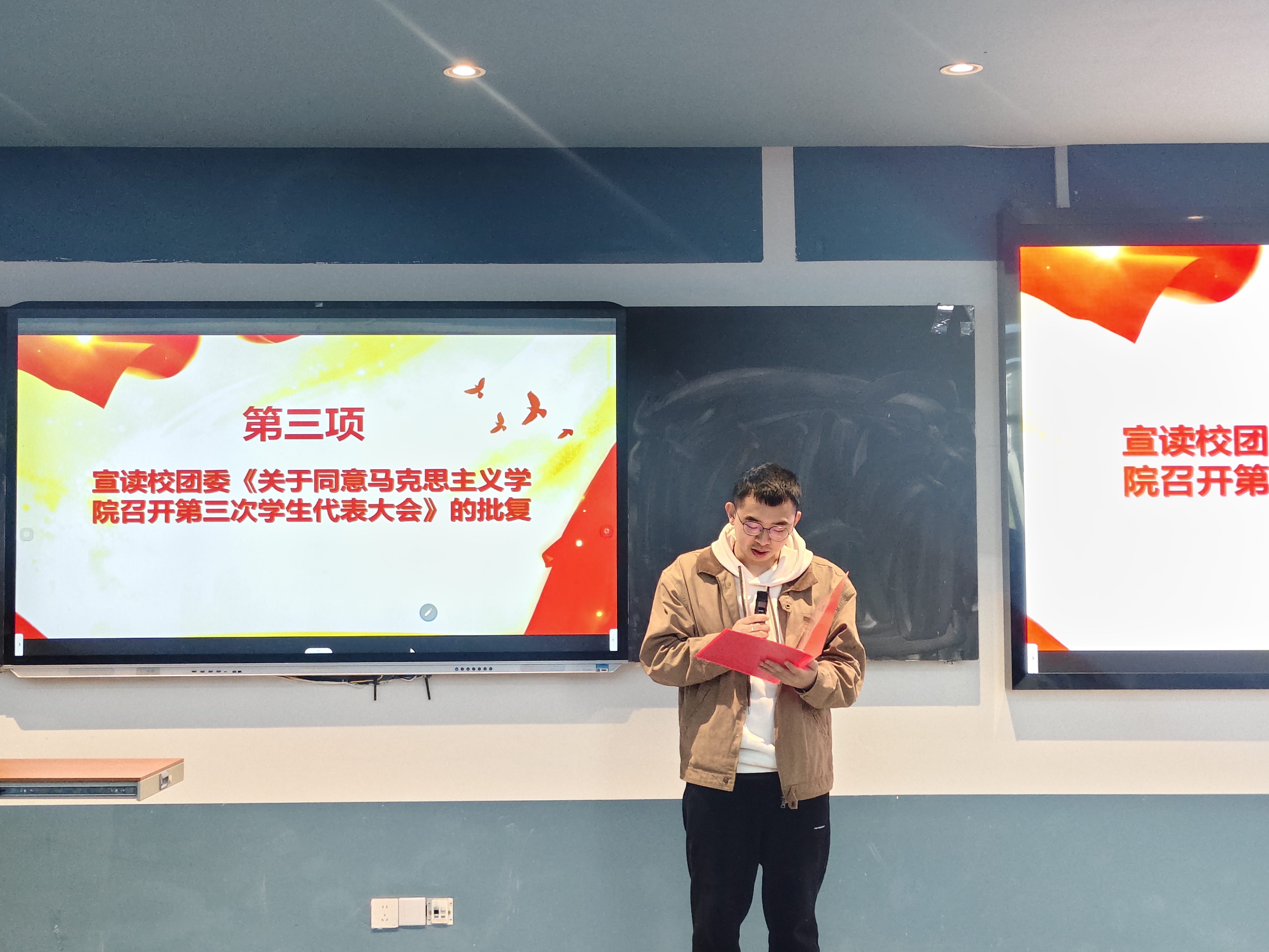 为回顾总结既往工作,全面加强学院学生组织建设、推动团学工作高质量发展,2025年10月22日,beat365官方网站马克思主义学院第三次学生代表大会于第五教学楼102教室顺利召开。马克思主义学院院长段吉福、团总支书记王乙岚、团学指导老师吕瑞出席会议,本次大会由付宇同学主持。 会议伊始,全体参会人员起立奏唱中华人民共和国国歌。 大会第二项议程:马克思主义学院团学指导老师吕瑞宣读校团委《关于同意马克思主义学院召开第三次学生代表大会》的批复。 大会第三项议程:马克思主义学院团总支书记王乙岚宣读beat365官方网站马克思主义学院党总支《关于马克思主义学院召开第三次学生代表大会的批复》,为大会提供了坚实的组织保障。 大会第四项议程:马克思主义学院第二届书记处主席团成员王梓灵作第二届学生会工作报告,全面回顾了过去一年学生会在思想引领、组织建设、服务同学等方面取得的显著成果,系统总结了学生会在实践探索中积累的宝贵经验。 大会第五项议程:学生骨干代表邱嘉怡宣读《beat365官方网站马克思主义学院学生会章程(修订案)》,经全体代表审议后鼓掌通过。 大会第六项议程:学生骨干代表冉慧玲宣读《beat365官方网站第三次学生代表大会选举办法(草案)》,经全体代表审议后鼓掌通过。 大会第七项议程:学生骨干代表陈凤烨宣读出席学校第七次学生代表大会候选代表名单、马克思主义学院第三届学生会主席团候选人名单。 大会第八项议程:参会代表秉持"公平、公正、公开"的原则,投下手中选票。经严格计票、监票程序,确定学校第七次学生代表大会代表、新一届主席团成员。 大会第九项议程:马克思主义学院院长段吉福在总结讲话中强调:“青年强,则国强。”当代青年正逢伟大时代,舞台广阔、前景光明,应当牢记这份殷切期望,将个人奋斗融入国家的宏伟征程。他对在场代表提出三点期望:一是要坚定信仰,筑牢思想根基,将马克思主义理论从课堂要求转化为内在追求;二是要做知行合一的实践者,锤炼过硬本领,主动将理论所学转化为服务社会的实际行动;三是要胸怀大局,勇担时代使命,把个人成长融入学院、学校和国家发展需要。 大会在激昂的《中国共产主义青年团团歌》声中圆满闭幕。 此次大会是一次承前启后、继往开来的青春盛会,充分展现了马克思主义学院学子昂扬向上的精神风貌。新一届团学组织必将不负韶华,团结带领全院同学为学院高质量发展贡献青春力量,在实现中华民族伟大复兴的征程中书写绚丽的青春篇章!(董艺/文 冉君临 刘佳怡 段楠兰/图 传媒中心 谢秋雨/编辑)
