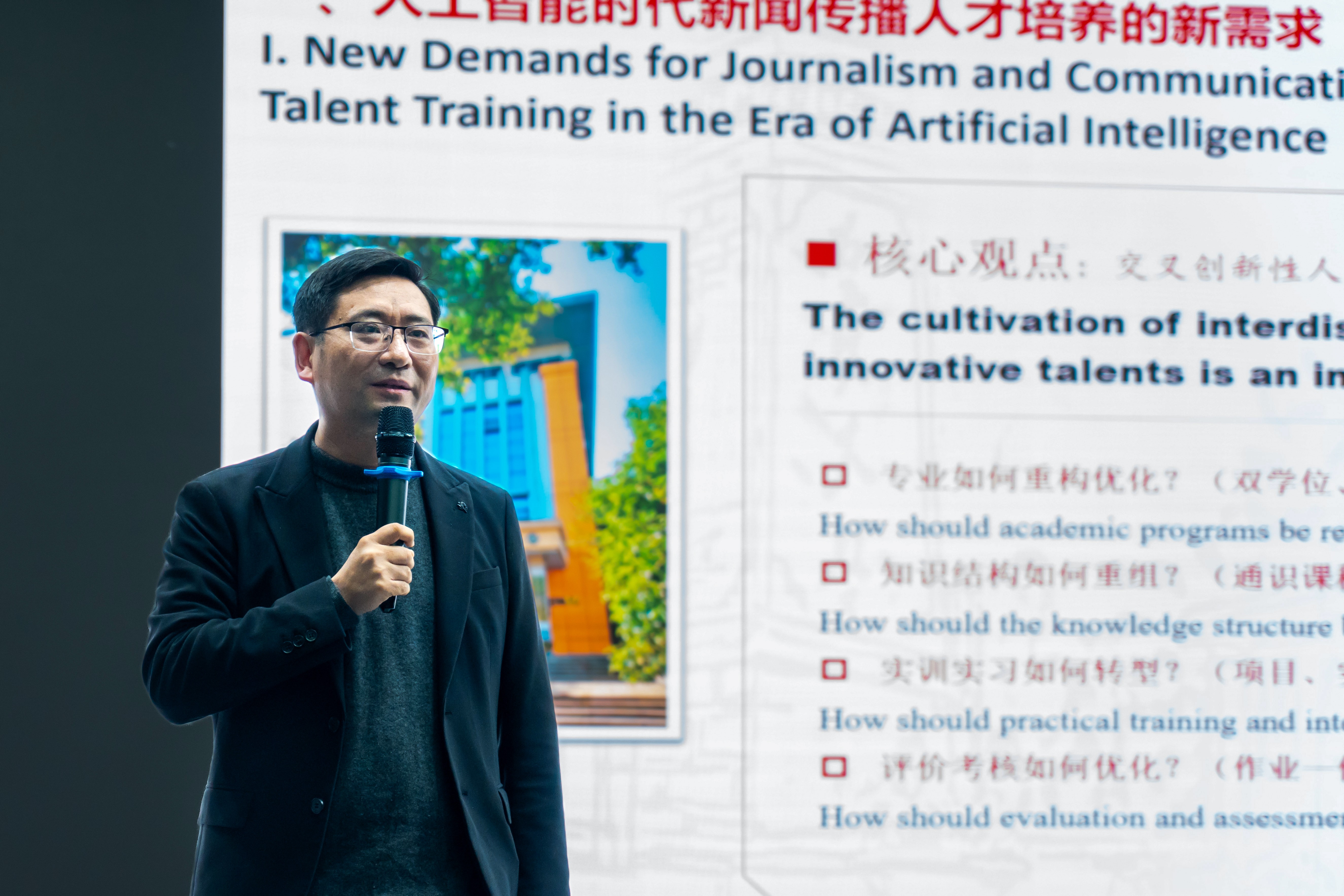 12月10日,beat365官方网站巴南校区4K演播录制中心高朋满座,思想激荡,由重庆市电视艺术家协会与beat365官方网站主办、艺术与传媒学院承办的第二届“基于AIGC的设计与传媒教育发展论坛”暨艺术与传媒学院·人工智能与大数据学院院际协作签约仪式在此成功举行。论坛以“新质设计·数智传媒”为主题,作为重庆市社科界第九届学术活动年项目,汇聚了来自重庆广电集团、重庆大学、西南政法大学、四川美术学院等高校与行业的六位顶尖专家,共同探讨人工智能与艺术传媒教育融合之下的育人变革及创新实践路径。 直面变革:AIGC时代下传媒行业的定力与创新 论坛上半场,重庆广播电视集团(总台)党委委员、副总编辑余季波以《媒体人的使命与未来之路》为题,拉开了学术分享的序幕。他结合行业前沿动态,深刻剖析了在传播逻辑重构的时代背景下,媒体人必须坚守“内容为王”的初心,同时积极融入技术浪潮,构建体系化思维与商业逻辑,在变局中开拓新局,重思自身的核心价值与使命担当。 育见未来:新闻传播教育如何应答智能时代 重庆大学新闻学院党委委员、院长郭小安教授在《人工智能时代新闻传播教育的挑战与回应》中,为学科人才培养模式的转型提供了系统性思路。他创造性提出“增量改革,大平台建设”理念,并详细阐释了构建大实验教学平台、大文科科研平台、大产学研转化基地的三大构想。面对智能传播时代新闻传播人才培养的挑战与风险,郭小安教授以一系列深刻的“变与不变”为新闻传播教育的转型定下基调。即教育的模式可以变,方向不能变;教育的内容可以变,责任与使命不能变;学科的研究方法可以变,人文属性不能变;学生的学习工具可以变,深度阅读能力不能变;学生的学习方式可以变,合作能力、批判意识、创新意识、逆向思维、国际视野、家国情怀等核心素质的培养目标不能变。 课堂革命:一次与AI合作的生动备课实验 西南政法大学谷李教授将宏观理念落地于生动的教学微观层面,他以一堂“生成式电影课”为叙事核心,分享了利用DeepSeek为经典影片《花样年华》创作续集《花样年华:之后》的实验过程,并以此揭示了AIGC的复杂面向。谷李教授指出,AI能够“聆听”关于原作的社会对话,有效吸收其意涵并体现于新的表达,且续作与原作具有高度连贯性,令人惊喜。然而,虽然AI可以高效完成符合“目标”的文本,但存在“是否真的‘关心’其生成的内容”的缺失。他认为,实验给出了应在教学中发挥AIGC生产性的启示,人机共生时代,需认识到教育的核心使命正从“知识传授”转向“人性淬炼”,教师必须引导学生锚定创作的目的与意义,培养价值判断力、情感共鸣力以及拥抱不确定性的勇气,因为“人,依然是意义的宇宙”。 教学重构:艺术设计教育的“变”与“不变” 重庆大学产业技术研究院AIGC讲师吴长川则以《AI时代艺术设计的变与不变》为题,为艺术设计教学改革提供了清晰路径。他指出,设计师的角色正在发生根本性转变,这意味着教育需要引导学生将AI视为协同创作的合作者,而非纯粹的工具操作者。面对“企业要什么,学生学什么,老师教什么”这一传统链条的失效,吴长川提出全新的教学逻辑:教师应主动发现企业可能遇到的真实问题,引导师生共同探索解决方案,以此驱动教学。吴老师强调,教学的目标应从完成“作品”转向创造“产品”,注重“轻量化商业实践”。为落实这一理念,他分享了一套从“器、术、法、道”四个层面入手的系统方法,并指出变化的“器与术”是为了拥有更广阔的表达,而不变的“法和道”则指向更深邃的审美。 模式创新:川美跨学科人才培养的实践与思考 论坛下半场,四川美术学院影视动画学院副院长王茜濡教授以《动漫产业学院人才培养模式的川美实践》为题,分享了艺术院校在跨学科融合与创新型人才培养方面的宝贵经验。她系统阐述了以“道、学、术、用”为核心的育人理念,以及通过“艺科融合、项目驱动、沉浸创作、服务转化”四位一体的新模式,旨在培养兼具文化传承力、科技创新力与产业应用力的高素质艺术人才,最终实现 “艺术教育与现代产业的同频共振”,彰显艺术院校服务国家与社会的使命担当。 技术赋能:高保真数字人如何拓宽创作边界 重庆大学计算机学院教授、博士生导师秦红星从技术前沿出发,在《基于3DGS的数字人重建》报告中,揭开了高保真数字人的技术内核。他指出虚拟数字人的核心价值在于提供高效、低成本、高度定制化的“真人出镜”解决方案,可应用于视频、直播、数字员工等广泛场景。秦红星教授系统梳理了数字人技术的两大分支:人体数字人技术专注于姿态控制与物理交互,涉及动作驱动、环境感知、全身协调以及复杂的布料物理模拟;人头数字人技术则致力于实现高保真交互与情感传递,追求面部微表情的肌理细节与情感计算的逼真模拟。他阐明,数字人技术的底层核心为数字生成任务:即给定人体骨架参数与表情参数,生成对应的人物身体及脸部图像。秦教授的报告将深奥的计算机图形学原理与鲜活的创作需求相结合,生动展示了以3DGS为代表的前沿技术如何为艺术设计、传媒内容创作提供强大应用支持,从技术底层拓宽了艺术表达的边界。 签约协作:艺术与技术的跨学科融合迈出实质步伐 主题发言结束后,论坛迎来了一个重要