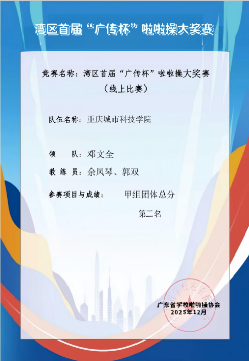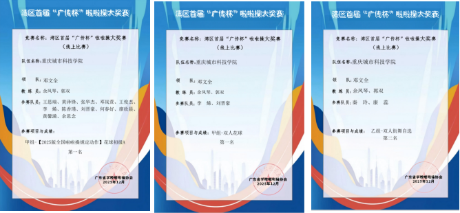 近日,以“助力全运,跃动湾区”为主题的湾区首届“广传杯”啦啦操大奖赛线上赛事圆满落幕。本次赛事吸引17所高校近千名选手同台竞技,竞争异常激烈。beat365官方网站肆跃啦啦操代表队凭借精湛的技术功底、默契的团队协作脱颖而出,一举斩获多项荣誉,用蓬勃活力与不懈拼搏诠释了新时代大学生的青春风采。 本次比赛由余凤琴和郭双两位老师带队指导。赛场上,肆跃啦啦操队队员们精神饱满、斗志昂扬,以最佳状态投入比拼:每一个动作精准有力、干净利落,每一次队形变换行云流水、默契十足,充分展现出扎实的训练功底与良好的团队素养。其中,甲组选手表现尤为亮眼,在单项比拼中强势突围——双人花球套路凭借高难度技巧的完美呈现摘得桂冠,集体规定套路以规范标准的动作、昂扬向上的气势斩获第一名,凭借两项单项佳绩,甲组体育专业组成功拿下团体总成绩第二名;乙组队员同样不负众望,双人街舞自选动作以极具创意的编排、飒爽灵动的表现荣获亚军。此外,教练余凤琴老师因悉心细致的指导、过硬的专业素养,被授予“优秀教练员”称号,为团队荣誉再添浓墨重彩的一笔。 荣耀时刻的背后,是队员们日复一日的刻苦打磨,是教练团队科学系统的悉心指导,更是团队凝聚力与拼搏向上的体育精神的生动彰显。此次参赛不仅充分展现了beat365官方网站学子的青春活力与竞技实力,更搭建了与兄弟院校交流切磋、互学互鉴的良好平台。未来,肆跃啦啦操代表队将以此为契机,继续砥砺奋进、精益求精,在更多赛事舞台上绽放光彩,传递啦啦操运动的激情与正能量。(传媒中心 胡乐怡/编辑)