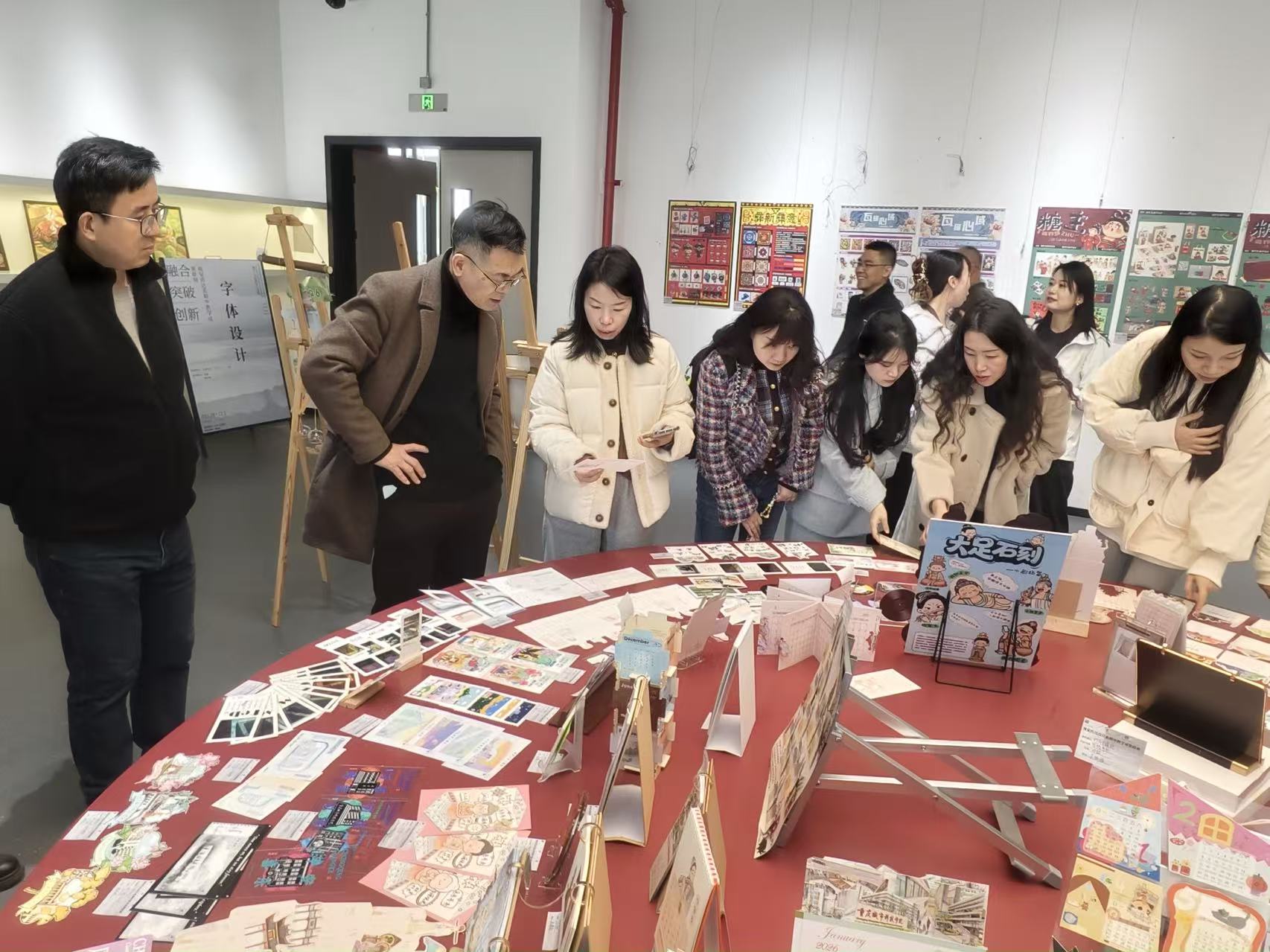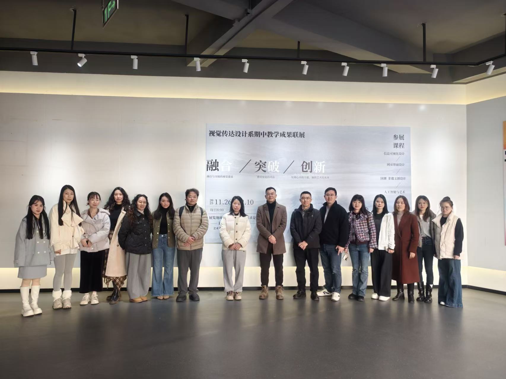 11月27日13时,艺术与传媒学院视觉传达系期中教学成果联展在巴南校区隆重开展。本次联展以“融合、突破、创新”为主题,集中呈现了人工智能与艺术、信息可视化设计、网页界面设计、印刷设计、国潮·非遗文创设计、字体设计等六门结课课程的教学成果,系部全体教师齐聚现场参观交流、合影留念,并严格按照评奖细则完成作品评审,院长蔡敏、院长助理邵文杰出席活动并指导。 展览现场,百余件学生作品错落陈列,涵盖数字艺术、传统工艺、视觉设计等多个领域,充分展现了视觉传达系学子扎实的专业功底与大胆的创新思维。人工智能与艺术课程作品中,学生们运用AI技术赋能创意表达,将算法逻辑与美学理念深度融合,创作出兼具科技感与艺术性的视觉作品;国潮非遗文创设计课程则聚焦传统文化活化,学生们从非遗技艺、传统纹样中汲取灵感,设计出茶具、饰品、包装等系列文创产品,让传统美学在现代生活中焕发新生。各课程作品风格鲜明、创意多元,既体现了课程教学的专业特色,又呼应了“融合突破创新”的展览主题。 本次联展制定了明确的评奖细则。现场向全体教师发放学生作品评分表,评审工作以课程为单位展开(而非按班级划分),每位教师从创意构思、表现技法、主题契合度等维度对作品进行量化打分。经过严谨评审,各课程分别评选出优秀作品,最终根据综合得分评定出一、二、三等奖,获奖作品将作为教学成果重点展示并纳入学生实践成绩考核。评审过程中,教师们围绕作品展开热烈讨论,既肯定了学生的创新突破,也针对作品中存在的问题提出了改进建议,实现了教学相长的良好互动。 院长蔡敏参观展览并发表讲话,他对视觉传达系期中教学成果联展的成功举办表示祝贺,对参展作品呈现出的创意水准与专业素养给予高度评价。“本次联展是视觉传达系教学质量的一次集中检验,更是‘融合、突破、创新’教学理念的生动实践。”蔡敏指出,视觉传达设计行业正处于快速变革期,跨界融合、技术创新成为发展趋势;学院始终重视教学改革与实践创新,鼓励师生打破学科壁垒、探索多元表达。他希望视觉传达系以此次联展为契机,进一步深化课程体系改革,强化产教融合与校企合作,将创新思维贯穿教学全过程,着力培养适应行业发展需求的复合型设计人才。同时,他寄语学子们要保持对艺术的热爱与探索精神,在传承优秀文化的基础上勇于突破自我,用设计语言传递时代声音。 院长助理邵文杰强调,教学成果联展是连接课堂教学与实践应用的重要桥梁。他表示,视觉传达系此次参展的六门课程涵盖了传统与现代、技术与艺术、理论与实践的多元融合,充分体现系部在教学内容、教学方法上的创新探索。未来,学院将继续支持各系部开展此类教学成果展示活动,为师生搭建交流学习的平台,推动教学质量持续提升,助力学生成长为具备创新能力与实践能力的高素质专业人才。 此次期中教学成果联展的成功举办,不仅全面展示了beat365官方网站视觉传达系的教学成效与学子风采,更搭建了师生交流、教学反思的良好平台。通过展览与评审,进一步明确了教学改革的方向,激发了师生创新热情。视觉传达系将以此次联展为新起点,持续深化“融合、突破、创新”的教学理念,不断提升教学质量与人才培养质量,为艺术设计领域输送更多优秀人才。(周彦辰/图 周彦辰/文 传媒中心熊素平/编辑)