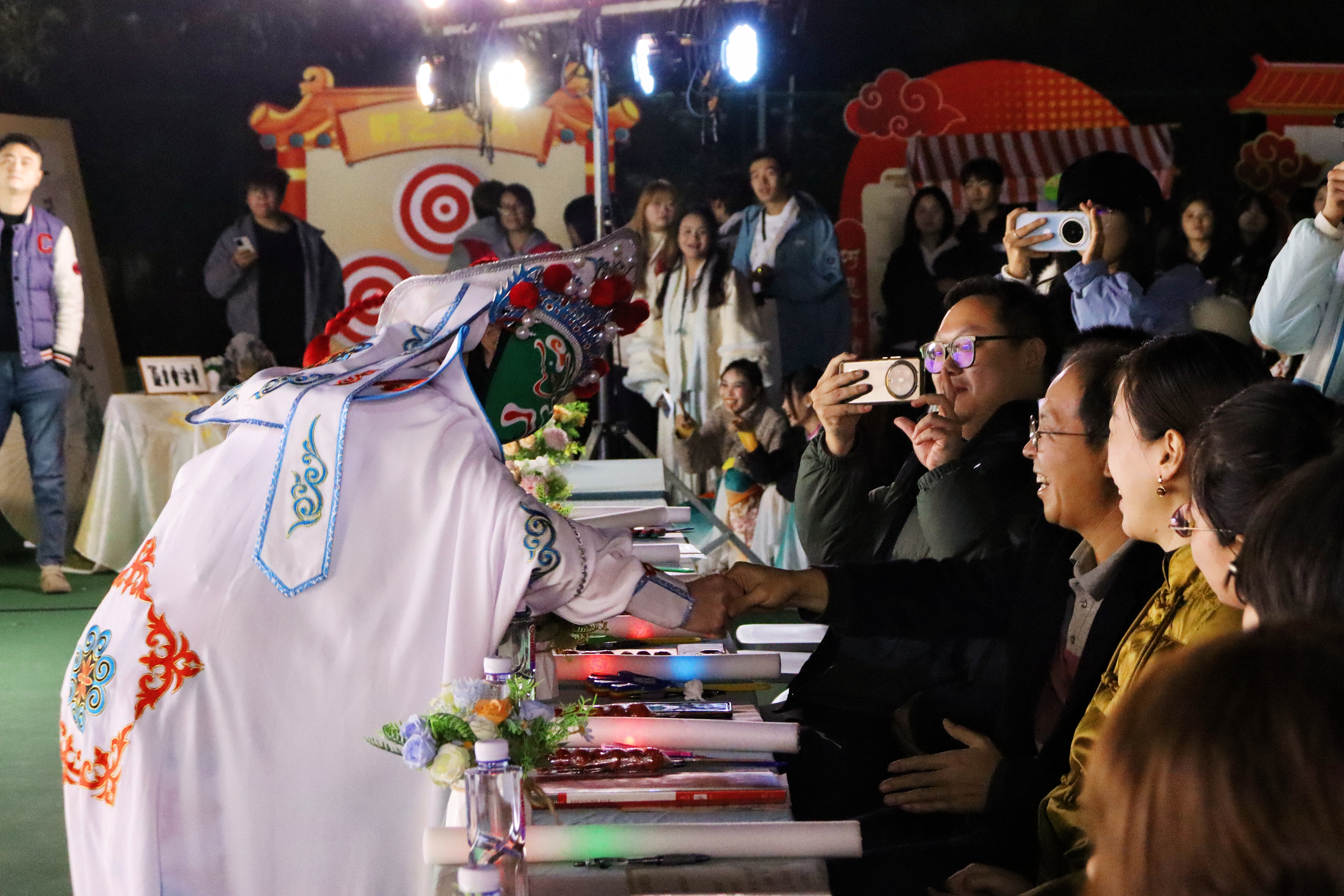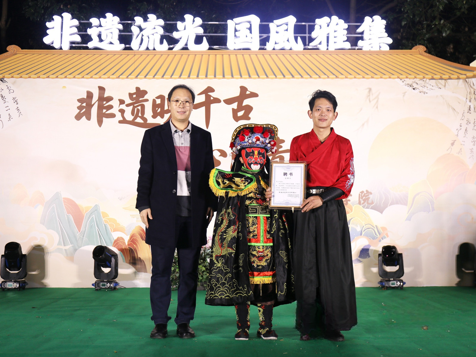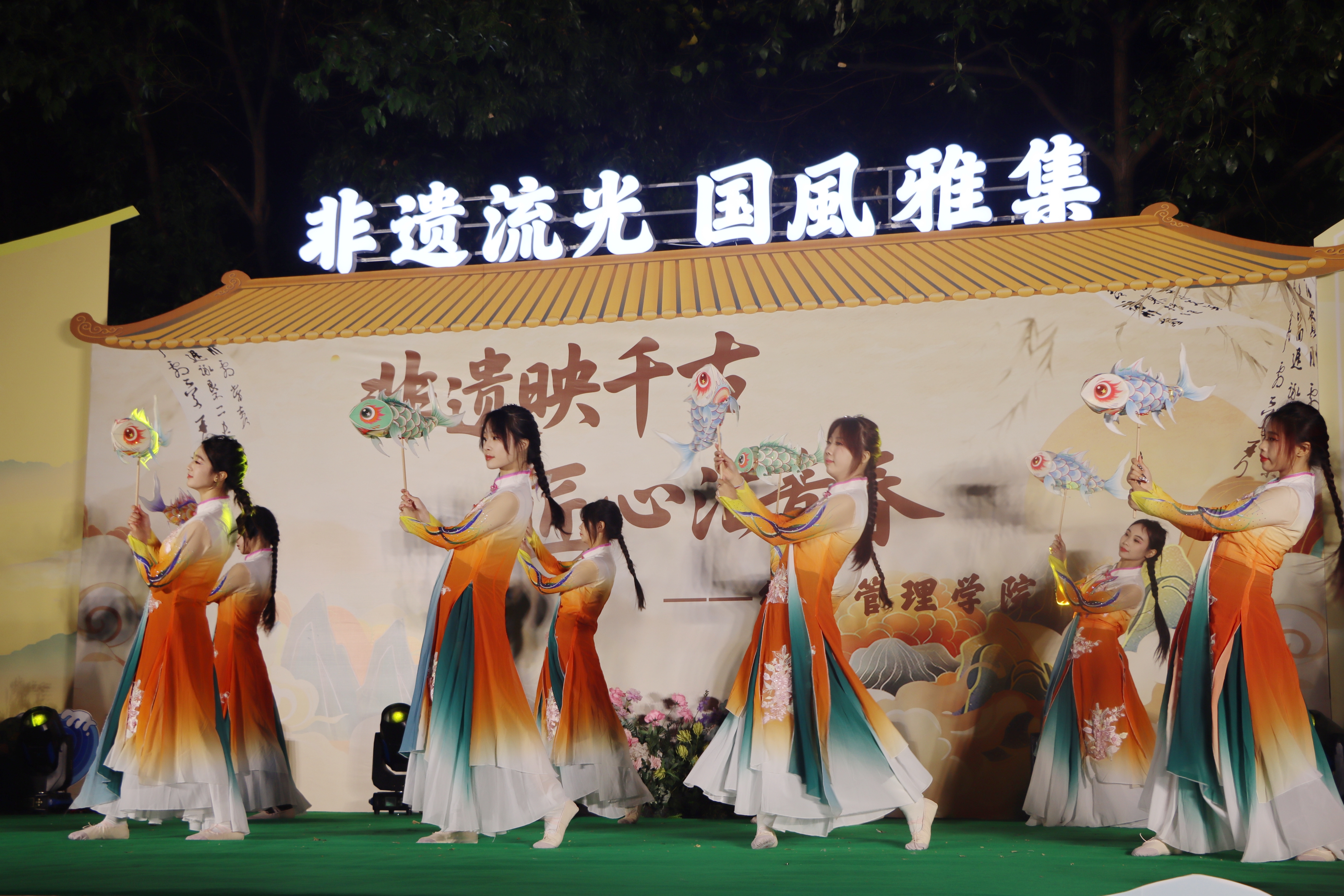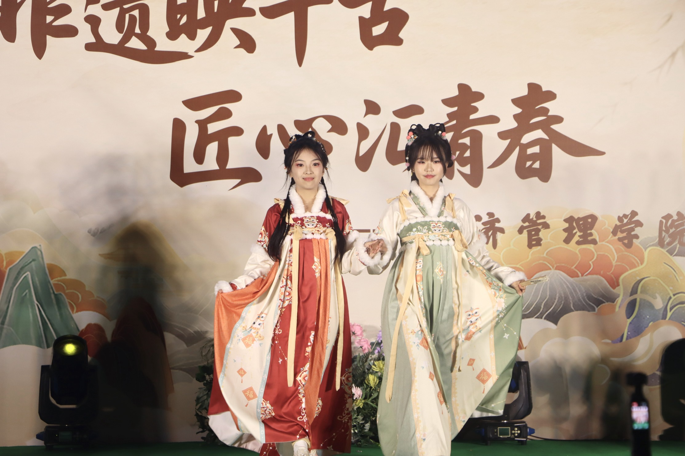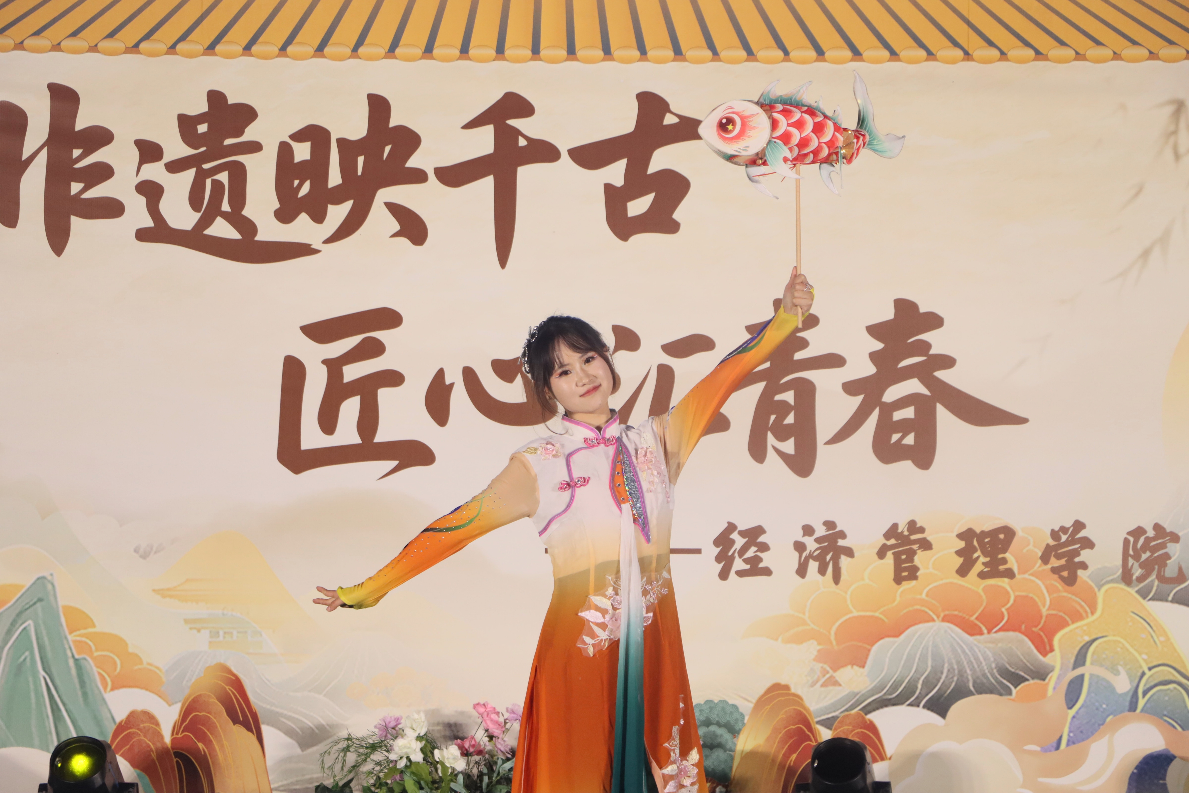 11月26日晚,AB栋篮球场华灯璀璨,人流如织。一场名为“非遗幻夜·古今对话”的文化盛宴在此隆重上演,标志着经济管理学院“非遗传承人进校园”系列活动的华彩启幕。这不仅是一场视听盛宴,更是一次深刻的文化洗礼与双向赋能。beat365官方网站党委副书记、副校长贾瑞,经济管理学院党总支副书记(主持工作)王爽、党总支副书记周德顺,建筑与土木工程学院团总支书记胡欣,体育与大健康学院团总支书记王胜蓝,建筑管理学院团总支书记孙玉素,电气工程与智能制造学院团总支书记陈慧,人文学院团学指导老师任俊燕,经济管理学院团总支书记龚宇梦、学生第三党支部书记周政霖共同出席了本次活动,与现场数百名师生一同见证了千年非遗技艺与现代校园文化的璀璨交融。 华灯启幕·鱼跃呈祥 非遗舞蹈表演《灯映鲤跃》中,经济管理学院舞蹈队员手持流光溢彩的鲤鱼灯,在幽暗的舞台上轻盈穿梭、婉转游动。那静谧而灵动的光影,仿佛携着古老的祝福与期盼,瞬间将观众带入一个充满诗意的非遗世界,寓意着学子如鲤跃龙门,也悄然拉开了传统与现代对话的序幕。 寄语传承·明灯引路 经济管理学院党总支副书记(主持工作)王爽登台致辞。她以“求木之长者,必固其根本”点明文化传承的深远意义,强调非遗文化是民族智慧的结晶,是文化自信的根基;她指出,本次活动旨在打破校园与非遗文化之间的壁垒,通过一场深度融合“教育、体验、创新、传播”的文化深耕行动,让非物质文化遗产在青年群体中焕发新的生命力。她勉励广大同学,在沉浸式体验中用心感悟非遗之美,主动肩负起新时代文化使命,争做传统文化的“传承者、创新者、传播者”。 华服展韵·衣冠上国 《华裳雅韵》国风服饰走秀,以一场“行走的华夏服饰史”将千年文明娓娓道来。从秦汉的庄重深衣、唐代的雍容襦裙,到宋明的清雅褙子与端庄道袍,历代服饰的形制之变与纹样之美在舞台上一一呈现,展示了中华“衣冠上国”的礼仪风范与深厚美学积淀,完美诠释了“古今对话”的视觉叙事。 礼聘传承·星火相继 随后,晚会迎来了一个重要时刻。在beat365官方网站党委副书记、副校长贾瑞的主持下,学院正式聘请李文杰非遗表演团队为“校园非遗传习导师团队”。这一举措,标志着经济管理学院在构建“校-地-传承人”三方交流平台、推动非遗常态化校园传承方面迈出了坚实的一步,为这场“古今对话”建立了长效的机制保障。 民俗惊鸿·绝技燃情 民俗技艺表演将全场气氛推向高潮:神秘莫测的川剧变脸在观众席间穿梭互动,瞬息万变的脸谱引来阵阵惊呼;刚柔并济的传统杂技以高难度的技巧展现力与美的完美平衡,赢得满堂喝彩;灵动活泼的舞狮随着欢快的锣鼓腾跃翻飞,为师生送上吉祥祝福,引发全场的欢笑与掌声;而传承人带来的古老喷火绝技,在熊熊烈焰照亮夜空的刹那,以撼人心魄的视觉冲击展现了非遗技艺的原始张力,将观众对传统文化的敬畏与热情彻底点燃。 光影定格,薪火长明 活动尾声,温情的合影环节为此次文化盛宴画上圆满句号。学校及学院领导与全体非遗传承人及表演者代表亲切握手并合影留念,学生代表向传承人献上鲜花,表达了对守护者们最崇高的敬意。 本次“非遗幻夜·古今对话”不仅是视听盛宴,更是经济管理学院落实“五育并举”、构建高品位校园文化的重要实践。它成功搭建了一个让青年与历史握手、让创意与传统交谈的平台,为非遗从“被保护的遗产”向“可生长的产业”转化播下了希望的种子。 昨夜,千年技艺在青春舞台上被光影点亮;今朝,这场意义深远的“古今对话”已将文化的火炬传递到青年手中。经济管理学院“非遗传承人进校园”系列活动由此启航,必将持续探索非遗文化在高校沃土中“活态传承”与“创新生长”的无限可能。(魏小艾 雷佳欣/文字 秦江涛 龙桂华 王星月 刘祺亓 吴绍美/图片 传媒中心马子微/编辑 )