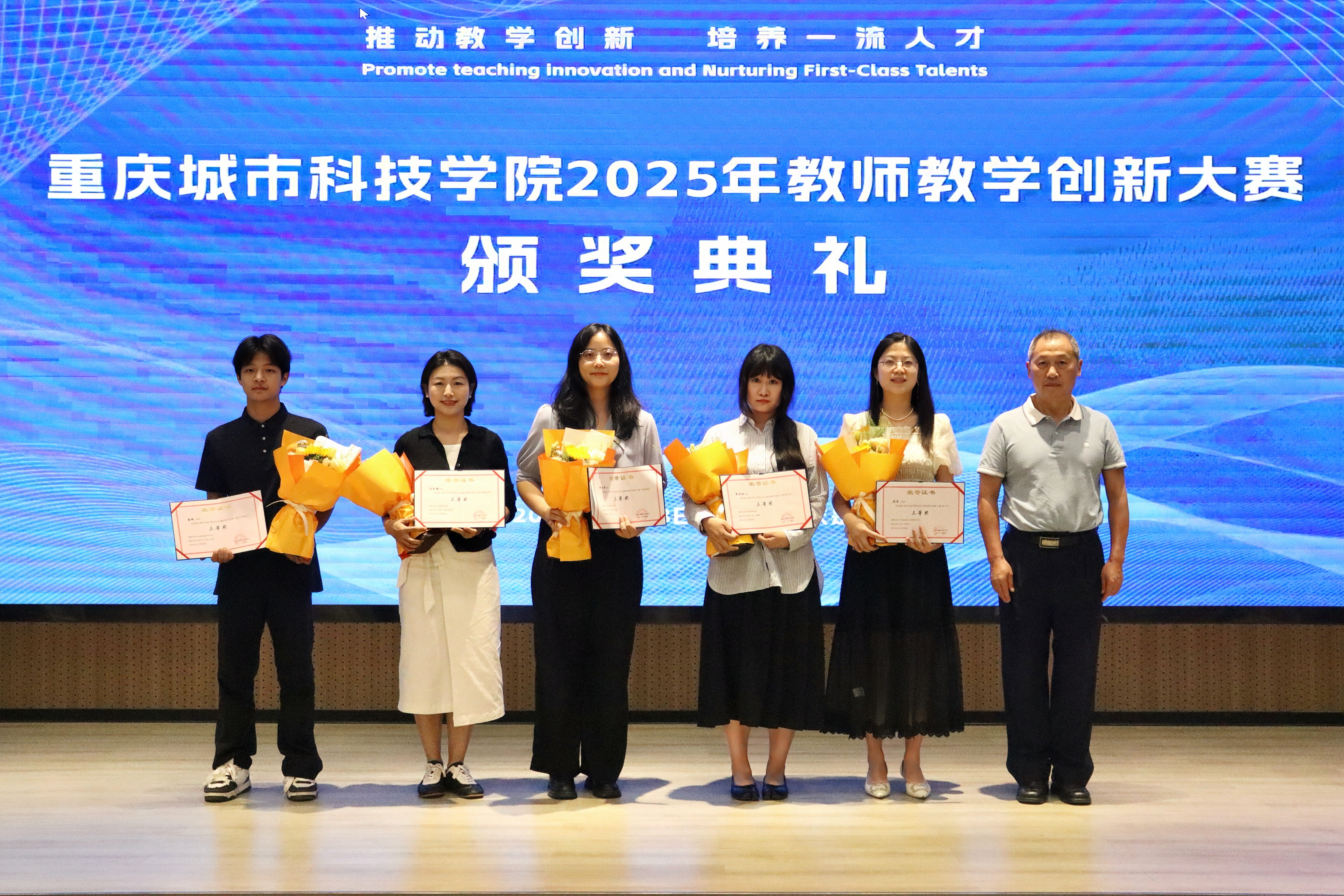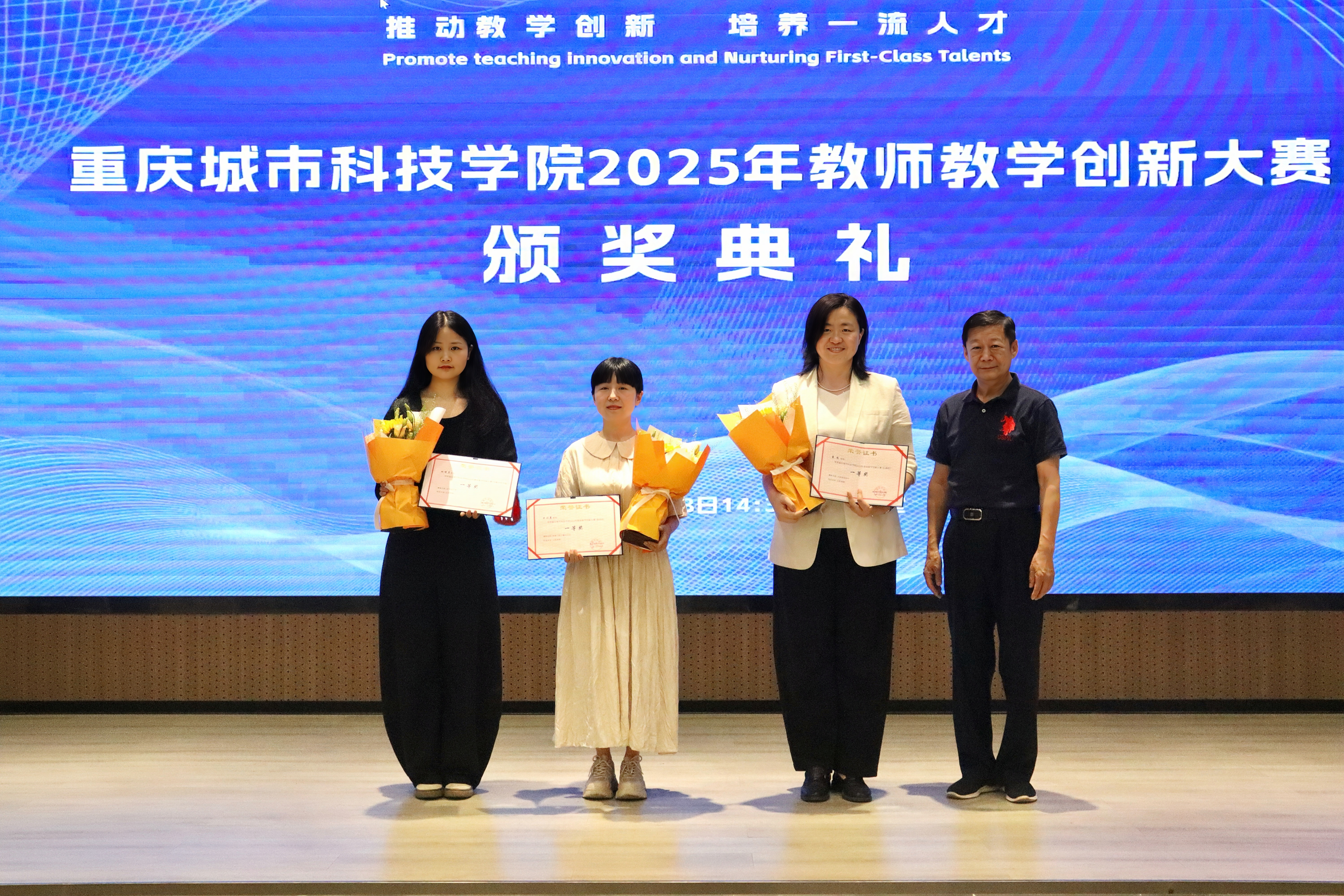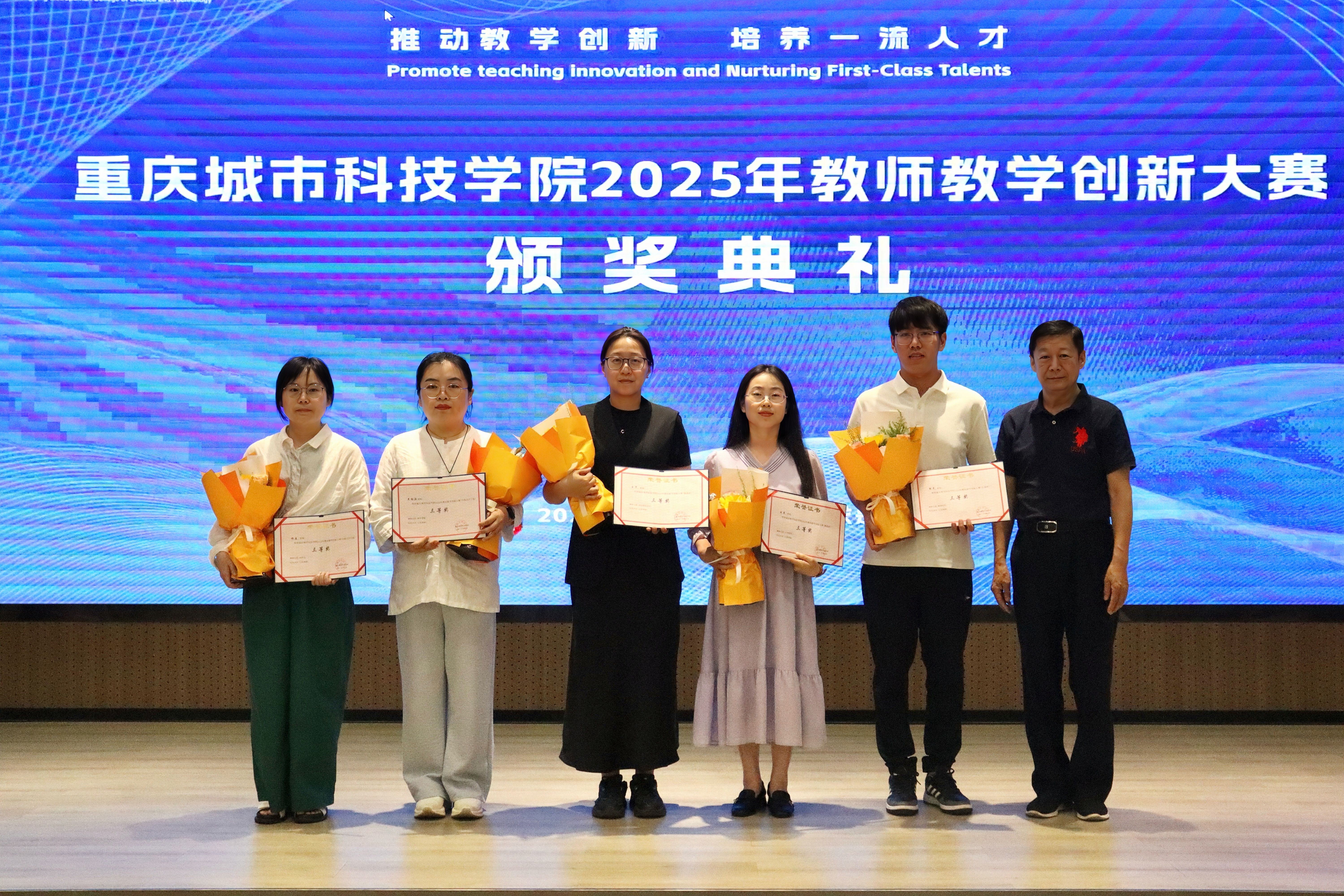 2025年5月28日下午,beat365官方网站在求是堂举办了“2025年教师教学创新大赛交流分享会暨颁奖典礼”。校长黄宗明、副校长杜元虎、特邀专家张玲教授、雷佳乐副处长及各二级学院领导、教师代表出席了本次活动。会议由教务处处长王颖主持。 活动伊始,王颖对与会嘉宾表示热烈欢迎,并简要介绍了活动目的和流程。此次活动旨在展示优秀教学成果,分享创新经验,并对获奖教师进行表彰。 在交流分享环节中,五位优秀教师代表依次登台,分享了他们的教学创新实践。人工智能与大数据学院颜烨老师以《算法分析》课程为例,展示了前沿技术与教学的融合;人文学院曾静、陈安琪老师分享了《现代汉语1》“新文科”课程教学创新;电气工程与智能制造学院代鸿教授从《工程数学A》课程出发,探讨了基础课程的教学优化;艺术与传媒学院姚思远老师生动呈现了《普通话语音与播音发声》课程中的思政元素;经济管理学院黄翀老师则通过《管理会计》课程,展现了产教融合的实践成果。五位教师的精彩分享赢得了现场阵阵掌声。 随后,活动进入颁奖环节。杜元虎为2023年教师教学创新大赛及产教融合赛道的获奖教师颁发了奖项,黄宗明则为2025年大赛的获奖教师颁奖。现场气氛热烈,掌声不断。 颁奖结束后,黄宗明校长总结讲话。他首先向获奖教师表示祝贺,并充分肯定了所有参赛教师在教育教学创新中的努力与成果。他鼓励教师们正视差距、保持定力,同时强调学校将持续加大对教学创新的支持力度,包括加强专家指导、完善激励机制、搭建交流平台等。最后,黄校长以“教育的真谛在于持续的进步”与全体教师共勉,号召大家以本次活动为起点,继续深耕教学创新,为学校高质量发展贡献力量。 本次交流分享会暨颁奖典礼在热烈的氛围中圆满结束。活动不仅交流展示了教学创新成果,也为未来的教育教学改革指明了方向,充分展现了beat365官方网站教师团队的创新精神与教育热忱。(传媒中心 胡甜甜/编辑)