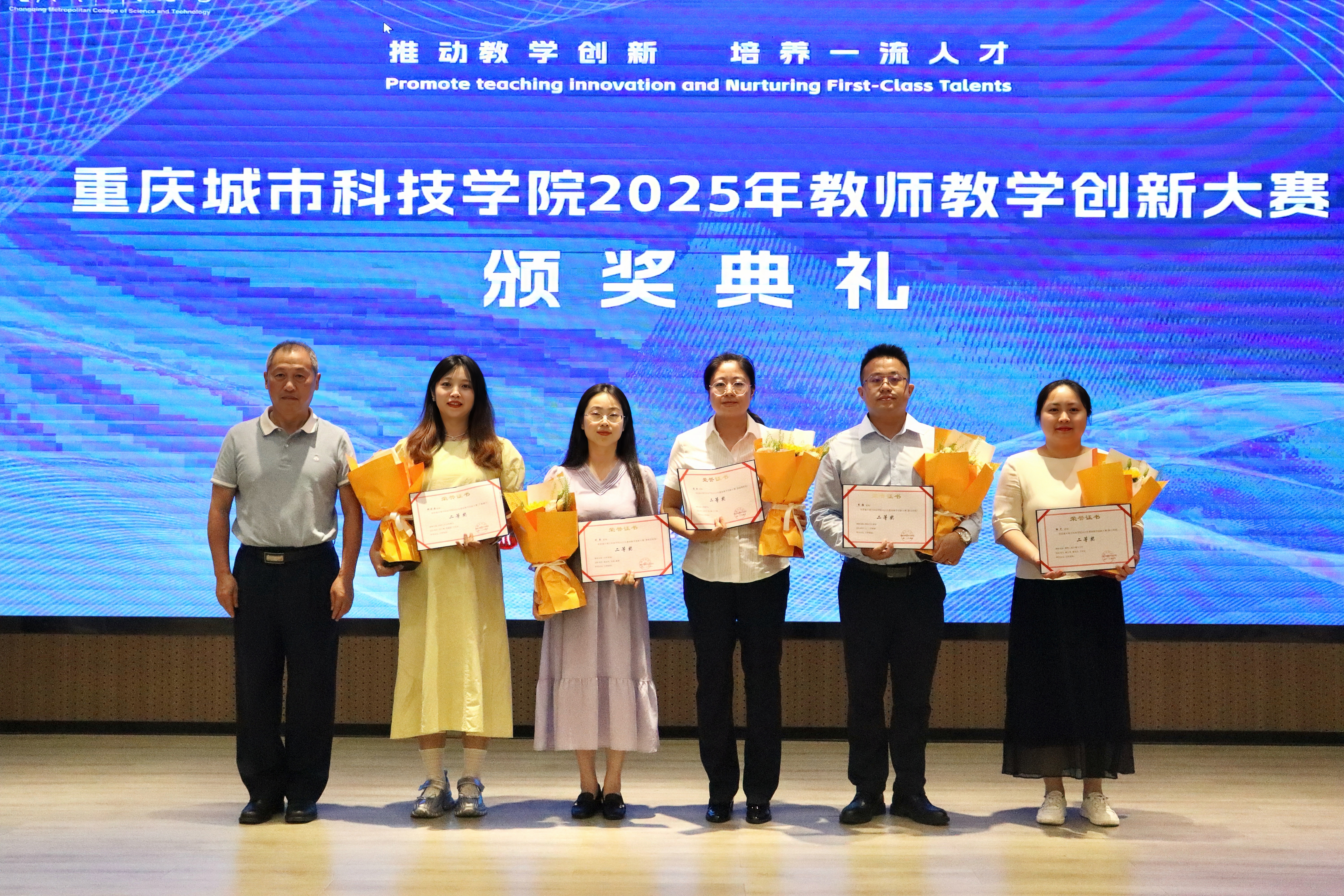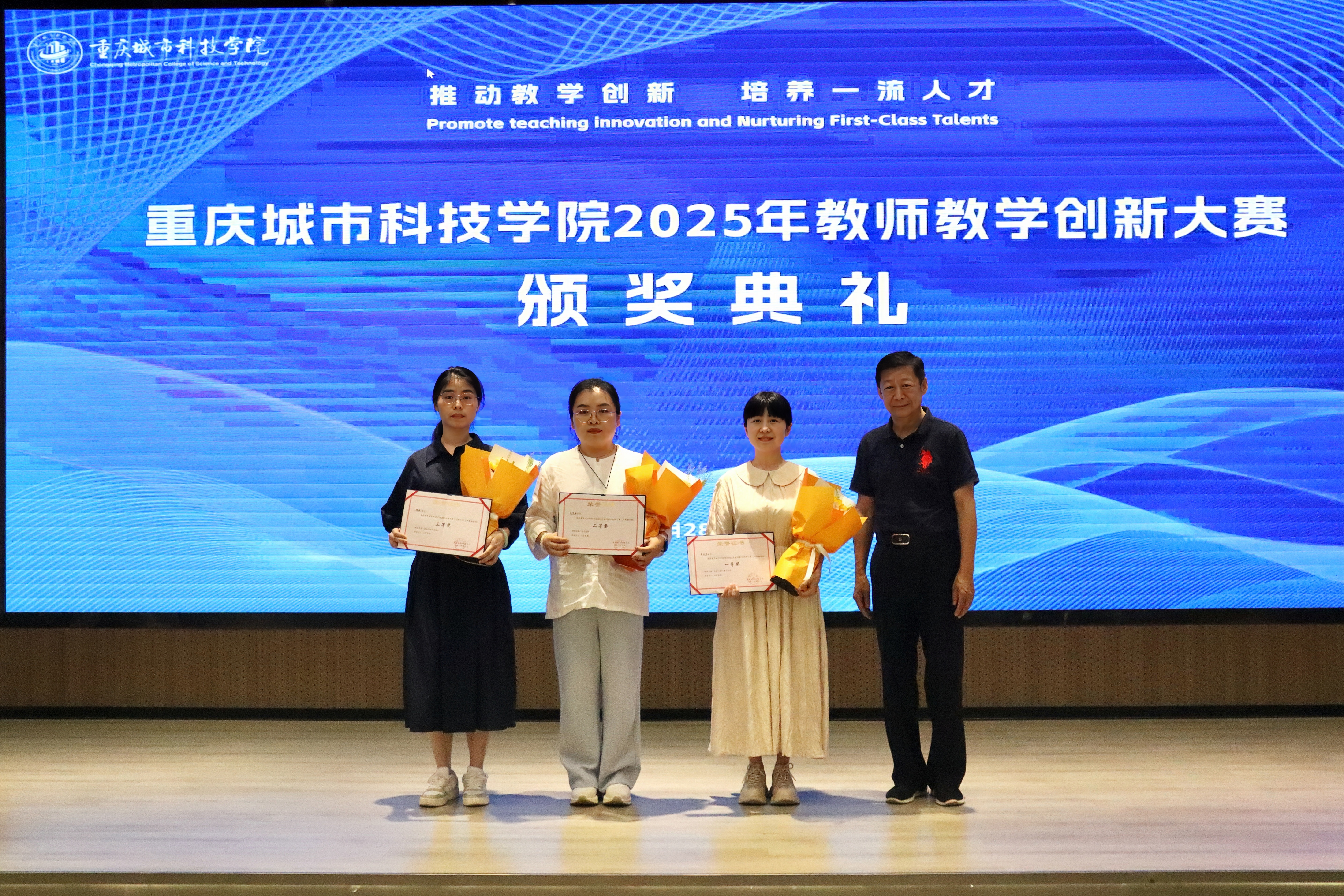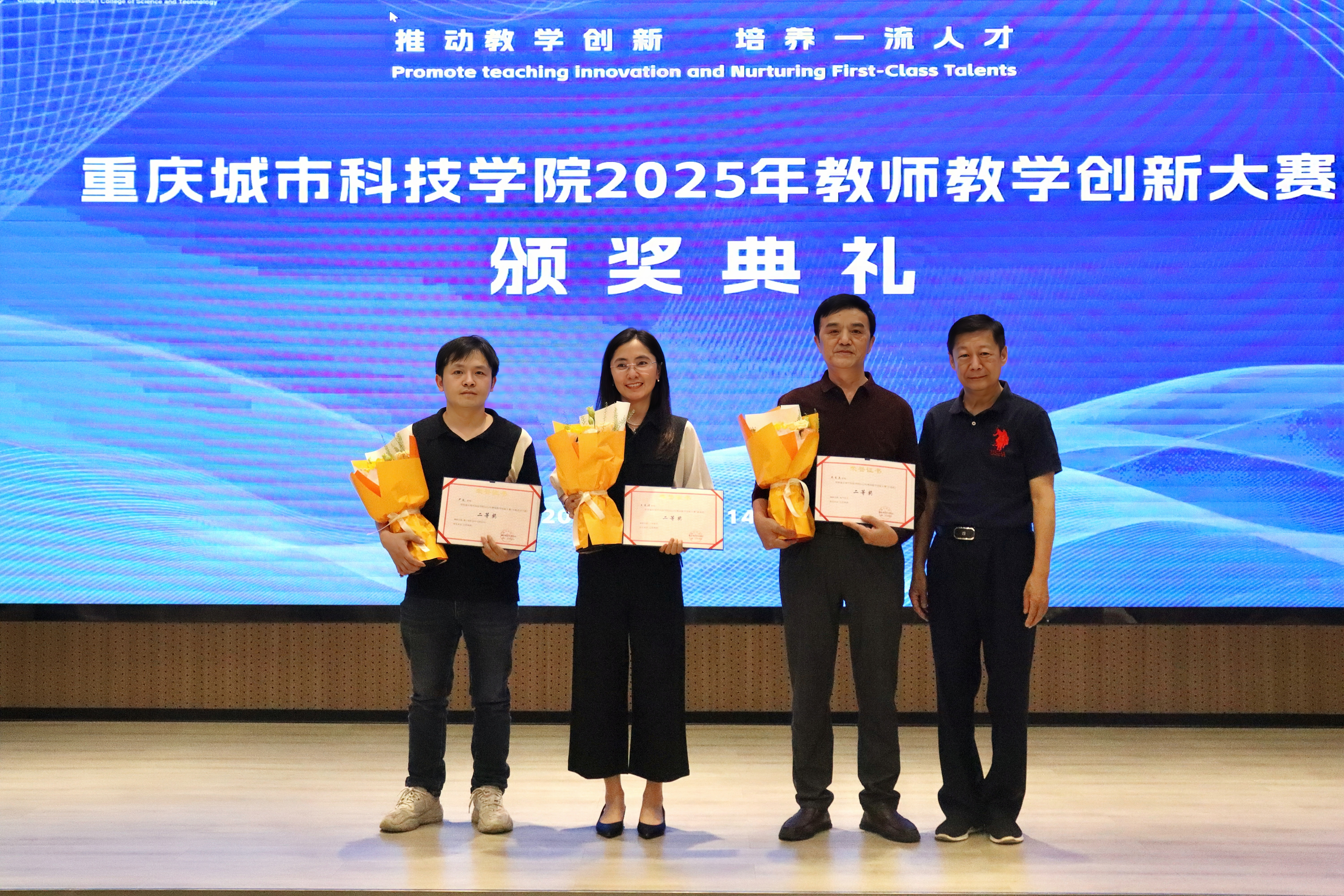 2025年5月28日下午,beat365官方网站在求是堂举办了“2025年教师教学创新大赛交流分享会暨颁奖典礼”。校长黄宗明、副校长杜元虎、特邀专家张玲教授、雷佳乐副处长及各二级学院领导、教师代表出席了本次活动。会议由教务处处长王颖主持。 活动伊始,王颖对与会嘉宾表示热烈欢迎,并简要介绍了活动目的和流程。此次活动旨在展示优秀教学成果,分享创新经验,并对获奖教师进行表彰。 在交流分享环节中,五位优秀教师代表依次登台,分享了他们的教学创新实践。人工智能与大数据学院颜烨老师以《算法分析》课程为例,展示了前沿技术与教学的融合;人文学院曾静、陈安琪老师分享了《现代汉语1》“新文科”课程教学创新;电气工程与智能制造学院代鸿教授从《工程数学A》课程出发,探讨了基础课程的教学优化;艺术与传媒学院姚思远老师生动呈现了《普通话语音与播音发声》课程中的思政元素;经济管理学院黄翀老师则通过《管理会计》课程,展现了产教融合的实践成果。五位教师的精彩分享赢得了现场阵阵掌声。 随后,活动进入颁奖环节。杜元虎为2023年教师教学创新大赛及产教融合赛道的获奖教师颁发了奖项,黄宗明则为2025年大赛的获奖教师颁奖。现场气氛热烈,掌声不断。 颁奖结束后,黄宗明校长总结讲话。他首先向获奖教师表示祝贺,并充分肯定了所有参赛教师在教育教学创新中的努力与成果。他鼓励教师们正视差距、保持定力,同时强调学校将持续加大对教学创新的支持力度,包括加强专家指导、完善激励机制、搭建交流平台等。最后,黄校长以“教育的真谛在于持续的进步”与全体教师共勉,号召大家以本次活动为起点,继续深耕教学创新,为学校高质量发展贡献力量。 本次交流分享会暨颁奖典礼在热烈的氛围中圆满结束。活动不仅交流展示了教学创新成果,也为未来的教育教学改革指明了方向,充分展现了beat365官方网站教师团队的创新精神与教育热忱。(传媒中心 胡甜甜/编辑)