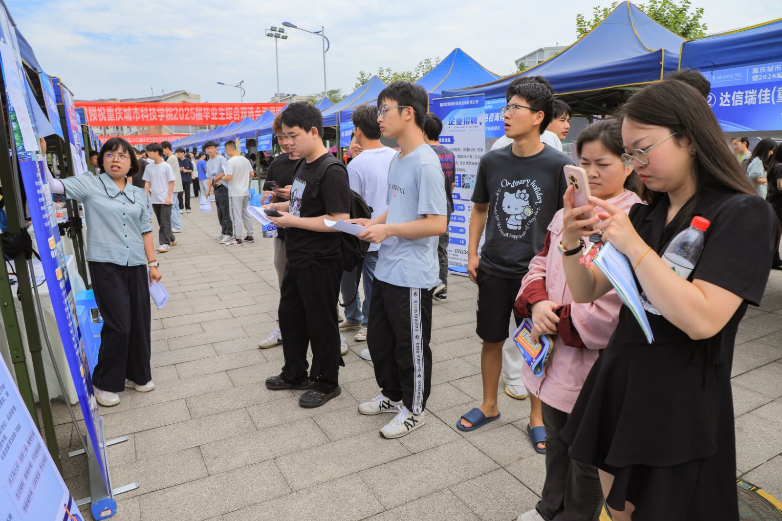 为贯彻落实教育部关于2025届毕业生就业“百日冲刺行动”、重庆市“百万高校毕业生等青年留渝来渝就业创业行动计划”要求,抢抓2025届毕业生离校前求职关键期,搭建毕业生与用人单位精准供需对接,提前谋划并帮助2026届毕业生寻找实习岗位,全力促进毕业生高质量充分就业。5月21日,beat365官方网站在永川校区三期综合实验楼前广场成功举办“渝快就—2025届未就业毕业生综合双选会暨2026届毕业生实习招聘会”,110余家用人单位参会,1500余名2025届、2026届毕业生到场求职应聘。 学校高度重视毕业生就业工作,精心策划本次双选会,聚焦2025届未就业毕业生求职意向及2026届毕业生实习需求,提供充足的实习就业岗位,实现供需精准匹配。通过前期学校访企拓岗行动邀请,北碚区、永川区等区县就业中心联动,永川大数据产业园、茶竹永川网等合作单位邀约,学校校友企业支持等方式,邀请到重庆海康威视科技有限公司、向愈生物科技(重庆)有限责任公司、珠海光库科技股份有限公司、安吉热威电热科技有限公司、重庆灵猫艺创科技有限公司、四川锶未铼科技有限公司等110余家重庆本地及周边地区的用人单位参会,提供实习及就业岗位人员需求数量2000余个,包括电气、机电、软件、人工智能、会计、金融、教育、营销、设计、运营推广等多个行业领域,搭建了广阔的就业平台,精准助力学校毕业生留渝就业创业。 活动现场气氛热烈,毕业生们手持精心设计的简历,穿梭于各企业展位之间,主动与招聘代表进行深入交流,详细了解岗位职责、薪资待遇及职业发展路径等重要信息。企业招聘代表们不仅耐心解答求职者的各类疑问,还主动分享行业最新动态、企业文化特色以及完善的晋升机制,帮助毕业生们更准确地评估岗位匹配度。 双选会期间,学校校长黄宗明,党委书记、政府督导专员王银峰,副校长余林,党委专职副书记、副校长贾瑞,校长助理田妍妮来到招聘现场,走访参会企业展位,详细了解招聘需求及毕业生应聘情况,感谢用人单位对学校就业工作的支持与帮助。部分二级学院领导现场征求用人单位对人才培养的意见建议,挖掘拓展更多就业岗位,鼓励毕业生抓住校招机会,尽早就业、顺利就业。大学生就业指导服务中心安排志愿者为用人单位提供周到服务,努力提高用人单位的参会满意度。招聘现场还设置了求职赋能专区包括西部计划、参军入伍、政策咨询、求职指导、简历诊断等指导服务,帮助毕业生提升求职竞争力,做好求职应聘的服务保障。 参会企业代表们对双选会的组织安排给予了充分肯定,表示深刻感受到学校对毕业生就业的用心付出和对企业的热情接待,对后续持续就业合作充满信心和期待。上海灿耀天昂智能科技有限公司招聘负责人表示:“城科学院学子综合能力强,我们每年都会前来招聘,现在还有多位城科学生在我们单位就业,希望这次能继续招聘更多优秀学子加入我们。”重庆标版工程管理有限公司负责人表示:“作为城科毕业的校友,很荣幸能返校参加招聘会,当前公司发展需要,正好能为学弟学妹的实习和就业提供机会,也为学校就业工作出份力。”重庆海康威视科技有限公司招聘人员称赞道:“双选会组织有序、服务细致热情,为我们和毕业生搭建了高效对接桥梁,非常期待牵手更多的城科学子。” 参会的毕业生们纷纷表示,通过此次双选会,不仅获得了丰富的就业机会,更明确了自己的职业发展方向。2025届毕业生邹同学说:“今年就业形势严峻,学校组织这次双选会提供了很多就业岗位,让我不必到处奔波求职,目前已和几家企业进行了沟通,后续还有几次面试,希望能够顺利签约就业。”2025届毕业生陈同学说:“前面因为备战考研而错过多次校园招聘,马上快要毕业离校了,我就想着先找个工作做着,不让家人和朋友操心,感谢学校这次双选会解了我的燃眉之急。”2026届毕业生张同学表示:“通过与企业代表交流,这次双选会让我感受了严峻的就业形势,也提前了解了行业的需求和趋势,让我的职业规划更清晰,有助于我针对性提升技能,为下半年实习和就业做好充分准备。” 本次双选会是学校落实教育部2025届毕业生就业“百日冲刺行动”以及重庆市“百万高校毕业生等青年留渝来渝就业创业行动计划”的重要举措,为用人单位和毕业生们提供了高效、直接、便捷的交流机会,拓宽了就业渠道,提升了求职效率。下一步,学校将继续抢抓毕业生求职关键期,持续开展访企拓岗行动,深挖更多就业岗位,广邀用人单位搭建供需对接平台,努力做好毕业生就业指导与服务,全力推进学校毕业生高质量充分就业。(传媒中心 胡甜甜/编辑)