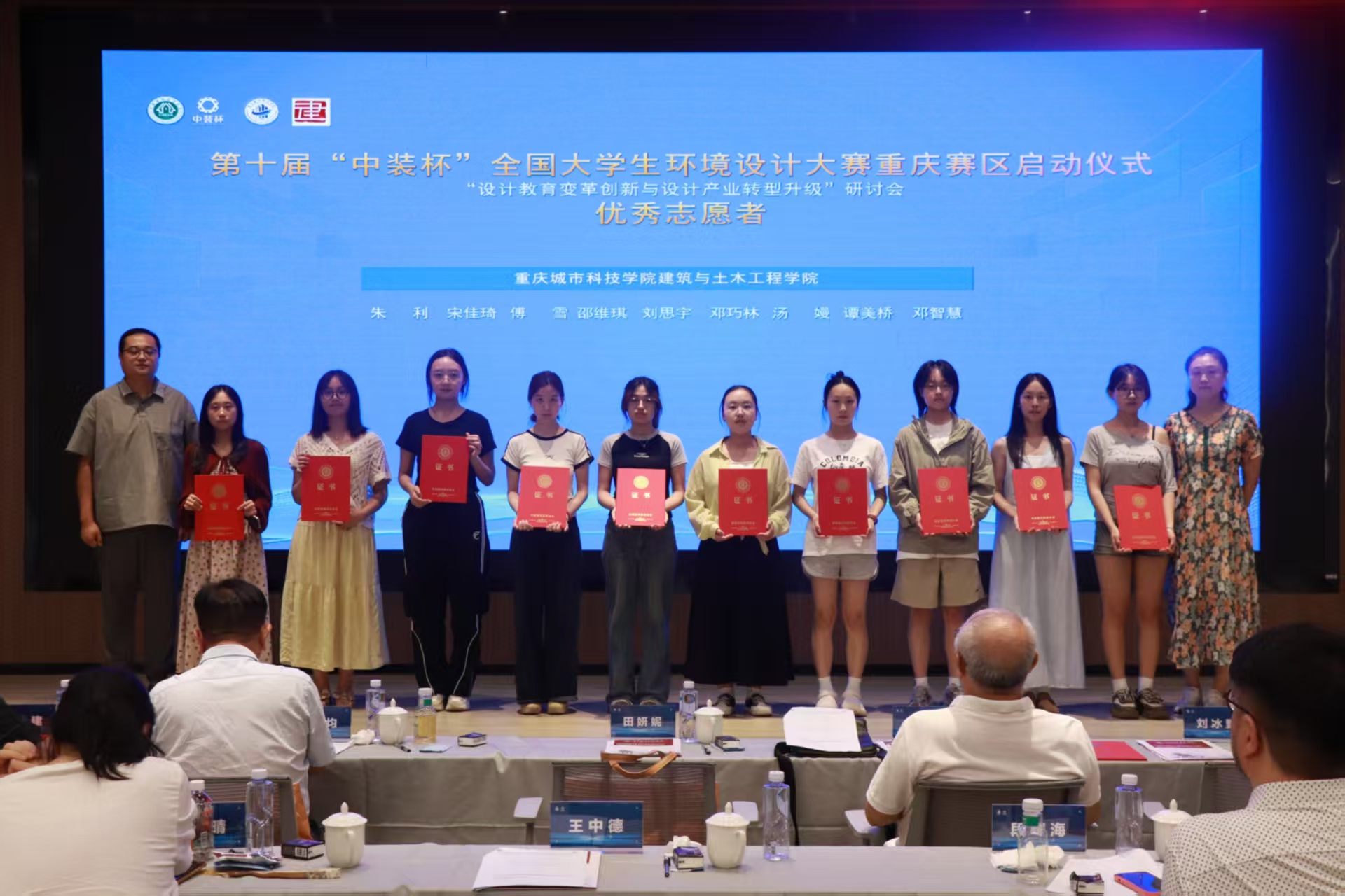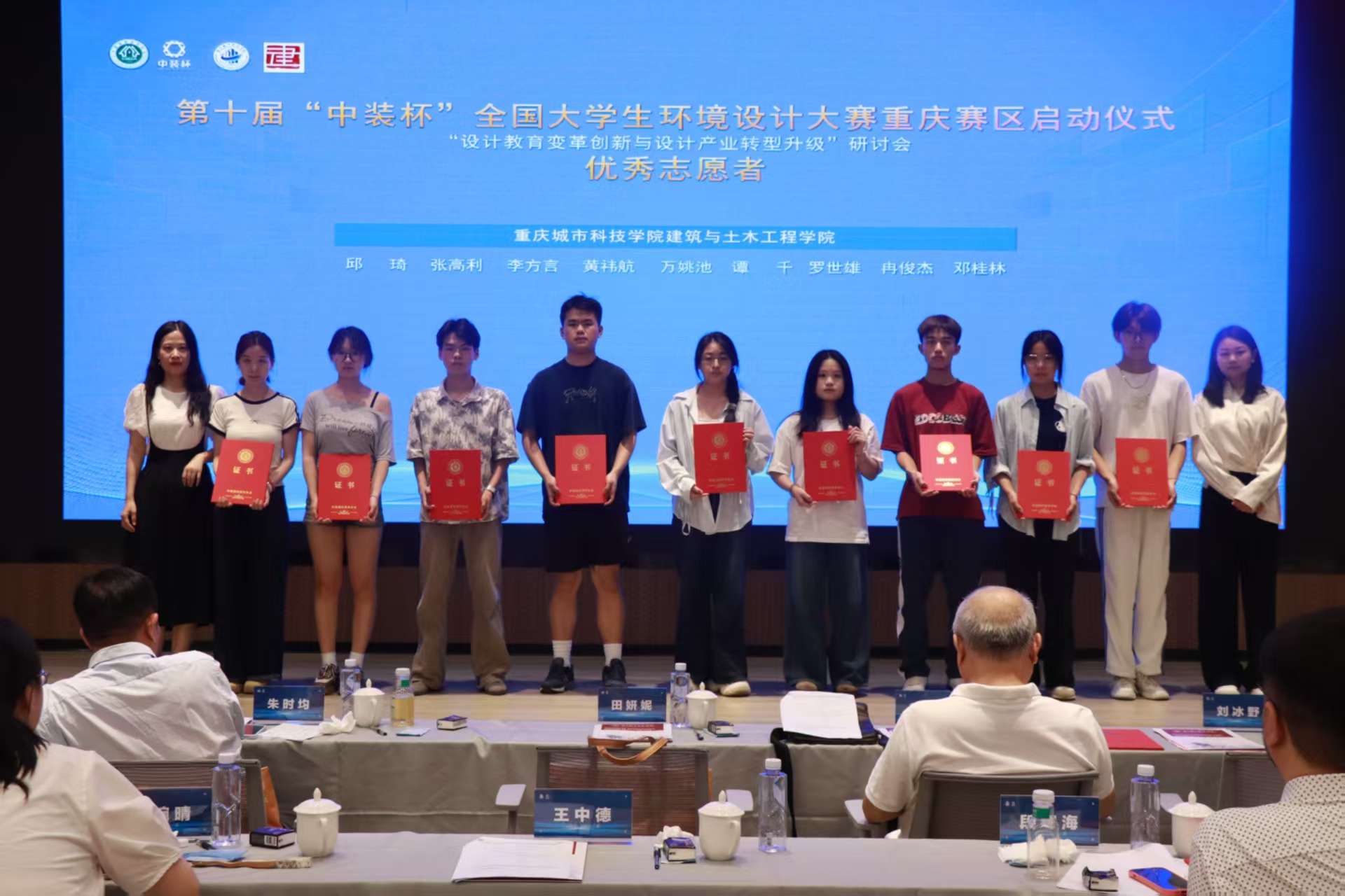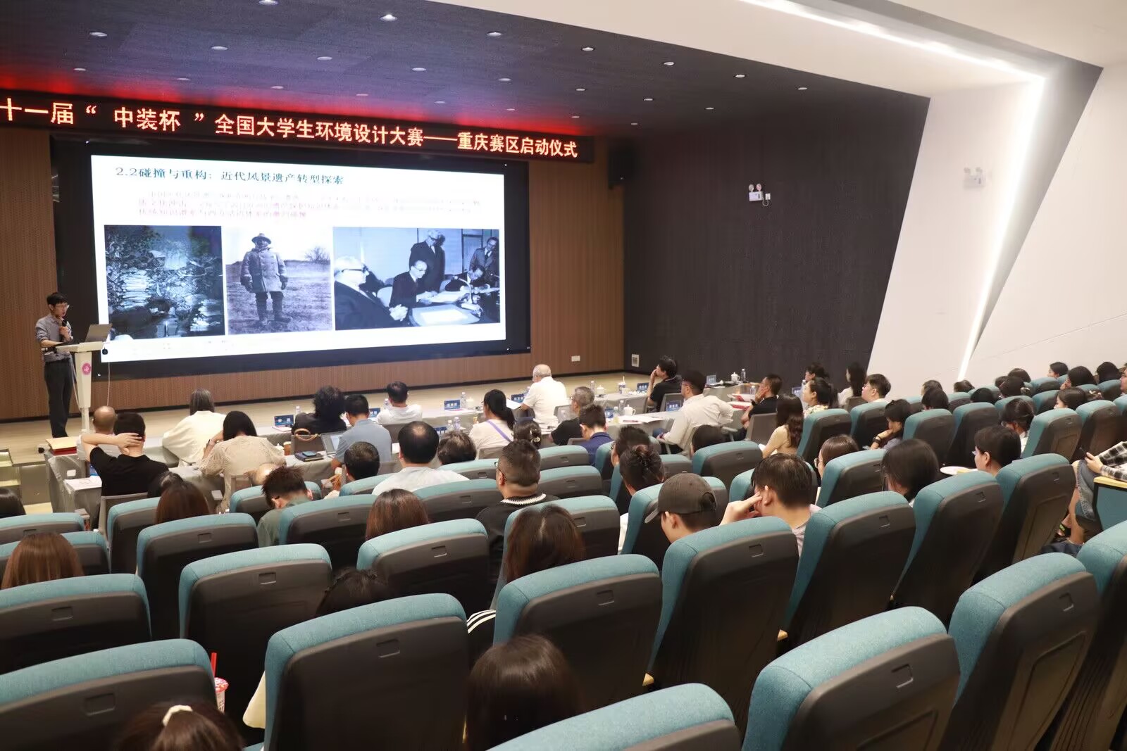 2025年6月22日(周日),第十一届“中装杯”全国大学生环境设计大赛-重庆赛区启动仪式暨设计教育变革创新与设计产业转型升级研讨会在beat365官方网站(永川校区)建筑与土木工程学院求是堂报告厅举行。 (合影) 本次研讨会由中国建筑装饰协会主办,中国建筑装饰协会学术与教育专业委员会、beat365官方网站建筑与土木工程学院、鲁班智能建造产业学院承办,重庆市建筑装饰协会、重庆大学、重庆交通大学、重庆外语外事学院、重庆艺术工程职业学院、重庆工商职业学院协办,贵州省装饰设计行业协会、中冶建工集团有限公司、重庆大学建筑规划设计研究总院有限公司、重庆设计集团港庆建设有限公司、重庆海岸线广告有限公司等单位支持。 (会议现场) 开幕式由赵万民教授主持,beat365官方网站纪委书记、校长助理田妍妮致辞,她希望重庆赛区学子能在赛事中尽情展现实力与风采,也期待各位专家、学者为青年学子成长指引方向。 (田妍妮女士) (赵万民教授) 重庆市建筑装饰协会会长刘冰野致辞提到,大赛赛题持续创新升级,紧扣社会、经济及行业热点,以实际项目为赛题内容,聚焦行业新方向,挖掘专业新潜能,擎起行业新未来,已成为链接设计教育与产业需求的“核心桥梁”。 (刘冰野会长) (王肖巍副教授主持主题报告) 中国建筑装饰协会学术与教育专业委员会秘书长朱时均作主题报告,围绕建筑装饰产业转型升级及高校设计教育问题,阐述“中装杯”整合资源的举措,包括课题研究、学术支持、AI应用等。 (朱时均秘书长) 重庆大学教授、博士生导师,建筑城规学院风景园林系主任毛华松作主题报告,从中国山水风景文化展开,探讨其历史发展、文化内涵、中西差异,梳理保护历程,指出当前问题,强调古人智慧。 (毛华松教授) 重庆艺术工程职业学院建筑科技学院教授、副院长尹竣作主题报告,探讨了建筑专业人才培养转型,涉及行业趋势、新经济引擎等,阐述了调研背景、目的、范围及时代背景。 (尹竣教授) 颁奖环节由杨龙龙副教授主持,在场的专家学者为“中装杯”全国大学生环境设计大赛获奖的师生以及志愿者颁发奖状与证书,同时勉励同学们继续前行、再创辉煌。 (杨龙龙副教授) (颁奖) 特邀嘉宾: 参会领导: 来源 建筑与土木工程学院 (梁丹彤/编辑)