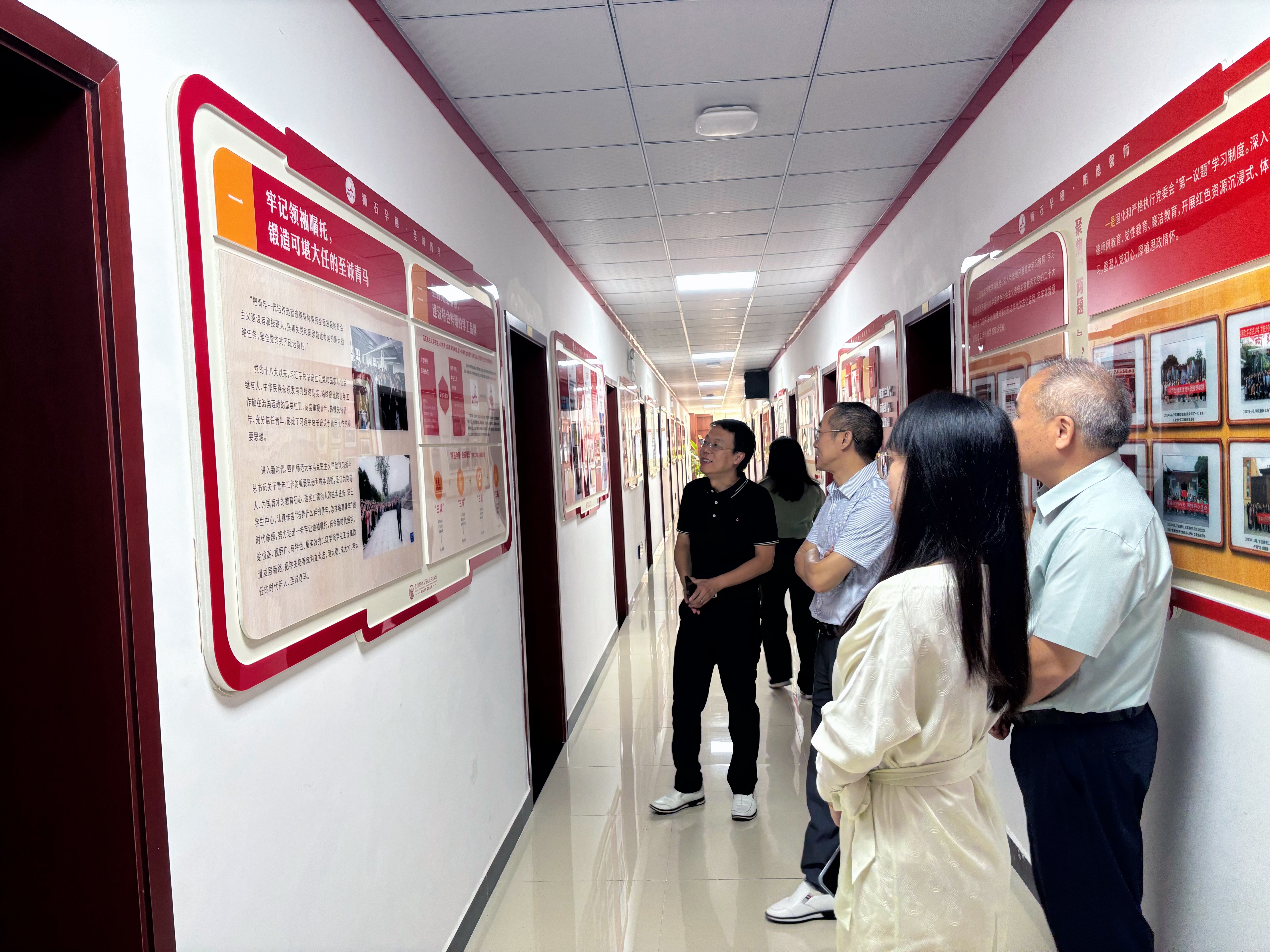 2025年9月25日,马克思主义学院院长段吉福、副院长张沙沙、思政系主任柳建国等一行7人,赴四川师范大学马克思主义学院进行调研交流,旨在学习借鉴兄弟院校在学科建设、专业人才培养、教科研建设等方面的先进经验,进一步增强校际合作与联系。 交流期间,双方就共同关心的话题进行了深入探讨。首先,四川师范学院马院院长戴剑飞结合对当前思政专业发展趋势的认识,介绍了四川师范学院马克思主义学院在学科发展规划、思政课教学改革创新等方面的举措与成效。 思想政治教育专业系主任黄雪垠分享了四川师范学院马克思主义学院在“微格”特色教学模式、人才培养模式探索、课程体系构建等具体做法。 段吉福院长代表学院对四川师范学院马克思主义学院的经验分享表示衷心感谢,他表示,四川师范学院马克思主义学院在诸多领域形成了鲜明特色,取得了显著成绩,其经验对马克思主义学院具有重要的启发和借鉴意义。 副院长张沙沙、思政系主任柳建国和副主任张峻铭分别对马克思主义学院思政课、专业课建设情况、人才培养方案修订等方面的具体做法进行了介绍。 会上,双方与会人员还就思政课实践教学、教科研项目联合攻关、学术资源共享等具体问题交换了意见。双方均表示,希望以此次调研为契机,建立更加紧密的联系,在未来开展更多层次、更多形式的交流与合作,相互促进,共同提升办学水平和核心竞争力。 会后,在四川师范学院马克思主义学院副院长付恒的陪同下,段院长一行对四川师范学院马克思主义学院进行了参观,学习了四川师范学院马克思主义学院院的“三读”、“三味”、“三能”、“三星”等品牌特色。 ( 马克思主义学院 图/文 传媒中心熊素平/编辑)