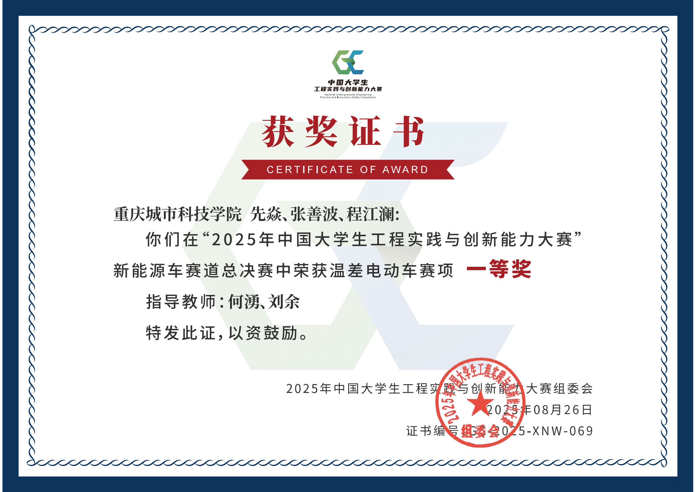 近日,备受瞩目的2025中国大学生工程实践与创新能力大赛圆满落幕。在这场汇聚全国高校工程创新精英的巅峰对决中,来自beat365官方网站电气工程与智能制造学院的2支参赛团队凭借出色表现,双双荣获全国总决赛一等奖。 此次大赛由教育部工程训练教学指导委员会主办,吸引了来自全国34个省(自治区、直辖市、香港特别行政区、澳门特别行政区)和新疆生产建设兵团的771所高校的12.6万名大学生同场竞技,属于教育部认证全国大学生A类学科竞赛,是国内工程实践与创新领域规模大、影响力广的重大赛事。本次大赛以“交叉融合工程创新育新质,立德树人强国建设勇担当”为主题,设立了新能源车、“智能+”、虚拟仿真三大赛道,共9个赛项,共建立4个国赛分赛场。内容涵盖新能源、人工智能、智能制造等前沿领域,旨在锻炼学生的创新思维和解决实际问题的能力,推动高校工程教育改革,为国家培养适应未来发展需求的创新型工程人才。 飞行器设计仿真赛项——万人争锋,协同对抗,全国八强 8月2日,飞行器设计仿真赛项决赛在北航杭州国际创新研究院举办。本项赛道共吸引全国30个省份近300所高等本科院校3000余支团队上万名学子参赛,最终79所高校94支团队晋级国赛。beat365官方网站电气工程与智能制造学院该支参赛队,历经“校—省—国”三级赛制,以重庆市季军晋级国赛;国赛阶段,面对“协同对抗”任务的复杂要求,团队成员唐鹏、赵宝印、刘畅经历了数月的集中备赛——从规则认知深化到任务模块训练,从突发问题模拟到团队协作磨合,指导教师刘余、史丙君全程参与制定培训计划,通过案例分析、头脑风暴等方式针对性提升薄弱环节。比赛现场,三人沉着应对航空救援与协同对抗双重任务:前期按计划执行时,他们凭借反复练习的经验有序推进;面对临时调整的作战指令,团队迅速分析问题、修正策略,最终以稳定的发挥在全国八强中占据一席之地,更打破了该校该赛项的历史最佳战绩。 (飞行器设计仿真团队 左起为:刘畅 赵宝印 唐鹏 刘余) 此项赛事聚焦低空经济、国防建设等国家需求,为师生搭建科技创新实践平台。不仅提升了综合职业素养,更促进校际交流,扩大了学校影响力,通过竞赛平台,让学生提前接触行业前沿问题,在“做中学”中深化了对低空飞行器设计、协同控制等核心技术的理解,推动低空技术类专业建设与行业需求精准对接,培养更多懂技术、会应用的高素质创新型人才。 新能源温差电动车赛项——龙争虎斗,竞途砺刃,新绩破恒 8月6日,新能源温差电动车赛项在大连举办。本赛道共有来自全国各省的高等本科院校151支队伍晋级国赛,分别在大连交通大学完成现场初赛,根据现场初赛成绩取前40%晋级,并在大连理工大学完成全国总决赛现场决赛比拼。备赛期间,团队成员们全身心投入,从省赛到国赛,历经10月的备赛时长,面对技术难题和时间压力,他们不断优化设计方案,进行反复测试与改进。备赛过程中,指导老师刘余、何湧全程跟进,从机械结构设计、三维建模到温差驱动模块及动力传输系统、工程训练与PCB电子电路(EDA)设计等,均给予及时正确的详细指导。最终,学校该赛项参赛学子,先焱、张善波、程江澜在国赛现场初赛表现突出,以9.6点(满点10点)的高分成绩顺利进入现场决赛,并在为期4天的激烈竞赛长时战线中有勇有谋,稳定发挥,最终创造新绩,一举斩获国赛一等奖。 (新能源温差电动车团队 左起为:先焱 程江澜 张善波 刘余) 此项赛事聚焦新能源需求与发展,将传统无碳小车动力源进行替换,采用温差模块方案的清洁能源输入,经精密计算设计及制造装配后的驱动机构、传动机构、凸轮、转向机构等结构的运动,在调试后能独立无其他外驱力情况下实现规定轨迹。该项竞赛综合性考验了学生对于复杂工程问题的思考与实践能力,也有效培养了学生对未来科学技术发展的主动思考能力和工程师责任感。 赛事总结——实战砺能,竞教相长,向新而行 近年来,学校高度重视学生实践创新能力的培养,积极组织学生参加各类学科竞赛,为学生提供良好的实践平台和指导支持。此次在2025中国大学生工程实践与创新能力大赛中取得的优异成绩,是学校长期坚持实践育人、深化教育教学改革、深化产教融合的成果体现。展望未来,学校将继续秉承“厚德、博学、求是、创新”的办学理念,鼓励更多学生投身专业竞赛和创新创业实践,致力于培养更多高层次、高素质、高技能的优秀人才。(图/赵宝印 唐鹏 张善波 文/刘畅 先焱 程江澜 传媒中心 王庆莲/编辑)