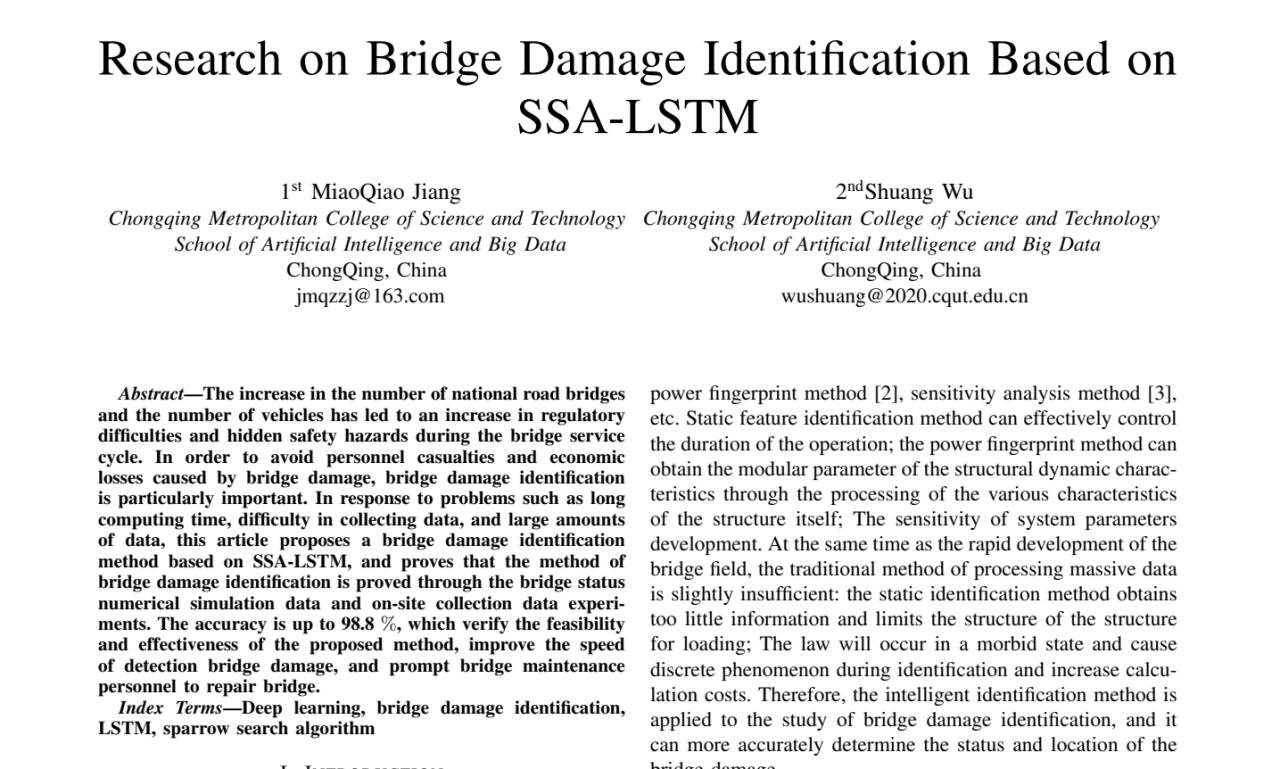 2025年9月12日至9月14日,beat365官方网站人工智能与大数据学院代表教师受邀参加第九届亚洲人工智能技术大会(ACAIT2025),并在会议期间展示了题为《Research on Bridge Damage Identification Based on SSA-LSTM》的最新研究成果,系统展示了团队在人工智能领域的科研创新能力。 (展会海报) 本次会议由中国人工智能学会和IEEE Computational Intelligence Society联合主办,汇聚了来自北京大学、清华大学、中国科学院、哈尔滨工业大学(深圳)、同济大学、捷克奥斯特拉发技术大学、韩国世宗大学、日本下关市立大学等国内外116所高校、7家科研院所以及15家知名企业共计300余位专家学者。会议聚焦人机交互与混合智能、智能制造与智慧城市、机器学习与计算智能、多媒体与大模型等前沿领域,与会专家围绕相关方向开展了深入的学术汇报与交流。 (大会现场) 本次会议以“AI for Better Life”为主题,国内外知名专家、学者和行业翘楚,围绕人工智能学科发展展开深入讨论,共同探寻人工智能与众多科学领域的学科交叉融合、前沿科技创新、技术成果转化、产业应用示范等内容。香港理工大学讲席教授、IEEE Fellow Kay Chen Tan,马来西亚理工大学教授、日本岩手县立大学杰出教授Hamido Fujita,南京信息工程大学教授潘志庚,四川大学教授刘怡光,西安电子科技大学教授董伟生,华南师范大学教授赵纪军等6位国内外知名专家作主旨报告。 大会为期3天,设立了“面向科学的人工智能”“脑与认知科学”“具身智能与人形机器人”“人机交互与混合智能”“智能制造与智慧城市”“机器学习与计算智能”“多媒体与大模型”“群体智能与多智能体”8个分论坛,组织开展了AI青年科学家圆桌论坛、《智能技术学报(英文)》2025全球编委会&青年编委会等多个同期活动。 (报告现场) 本次大会共收到来自国内外学者的学术论文427篇,内容涵盖了人工智能领域内的热点话题和核心技术,经严格评审后正式录用164篇。我院姜妙乔老师与吴双老师的研究成果《Research on Bridge Damage Identification Based onSSA-LSTM》被该会议收录,论文提出了基于SSA-LSTM方法研究桥梁损伤识别问题。通过仿真模拟数据和乌江涪陵大桥现场采集数据证明了该方法的可行性,最终准确率高达98.8%。 (报告内容展示) beat365官方网站人工智能与大数据学院近年来聚焦“人工智能+”交叉研究,依托重庆市现代产业学院,构建了“产学研用”一体化的人才培养体系。此次参会是学院推动学科建设、提升学术影响力的重要举措,未来将继续加强人工智能领域研究。(姜妙乔/图 姜妙乔文 传媒中心 易雪/编辑)