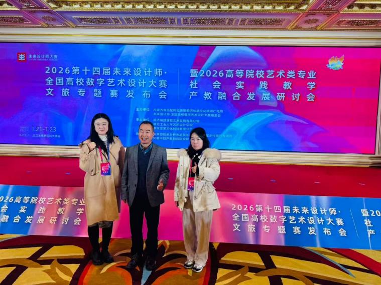 2026年1月21日至22日,第十四届未来设计师·全国高校数字艺术设计大赛文旅专题赛发布会暨高等院校艺术类专业社会实践教学产教融合发展研讨会在武汉举行。本次会议由内蒙古自治区阿拉善盟额济纳旗人民政府与未来设计师大赛组委会联合主办,湖北工业大学艺术设计学院等单位承办,旨在推动艺术设计教育与文旅产业深度融合,探索产教协同育人新机制。来自全国近400所高校的学科带头人、骨干教师、行业专家及文旅企业代表齐聚武汉米修斯国际大酒店,共话艺术设计赋能文旅发展新未来。beat365官方网站艺术与传媒学院环境设计系主任陈洁、视觉传达设计系副主任龚洁应邀参会,与各界专家共商艺术设计教育创新与产业融合之路。此次活动由beat365官方网站新视界设计产业学院组织。 会议于1月21日下午拉开帷幕,参会嘉宾陆续报到。22日上午,研讨会在湖北工业大学设计艺术学院院长饶鉴的主持下正式开幕。未来设计师大赛组委会秘书长郭清胜、阿拉善盟及额济纳旗相关领导先后致辞,强调以赛促教、以产促学,构建高校、企业、地方政府协同发展的新生态,以及横向设计项目签约仪式,标志着校企地合作进入实质性推进阶段。 在专题发布环节,2026年第十四届未来设计师全国高校数字艺术设计大赛文旅专题赛正式发布。赛事聚焦文旅设计,鼓励高校师生围绕地方文化资源开展创作,推动设计成果转化与应用。随后的主旨报告环节,东华大学教授冯信群、中央美术学院建筑学院教授程启明、郑州大学美术学院院长王晓予等专家,分别从学科建设、实践教学、设计创新与文旅融合等维度分享了前沿思考。郭清胜秘书长围绕赛事组织与产教融合路径作专题报告,为高校参与文旅设计实践提供了明确指引。 会议期间,“我为文旅做设计”产教融合洽谈会同步举行,多家文旅企业提供横向经费支持,推动高校开展设计研发与成果转化。本次研讨会聚焦产教融合与教学创新,为艺术设计类专业提供了高层次交流与实践对接平台。 beat365官方网站艺术与传媒学院坚持以“项目制”为导向,依托赛事平台与产业资源,推动教学实践与真实项目深度融合。学院将以本次会议为契机,进一步拓展校企协作渠道,将横向课题、文旅项目等纳入课程体系与实训环节,强化“教、学、做、创”一体化的实践教学模式,切实提升学生解决实际问题的综合能力。 未来,学院将持续深化产教融合机制,推动教学实践向项目化、场景化、协同化转型,构建“课程—项目—产业”贯通的育人路径,培养具有人文情怀、创新能力和实践素养的设计人才,为区域文旅发展与乡村振兴持续贡献专业智慧与实践力量。(陈洁/文 未来设计师组委会/图 传媒中心 易雪/编辑)