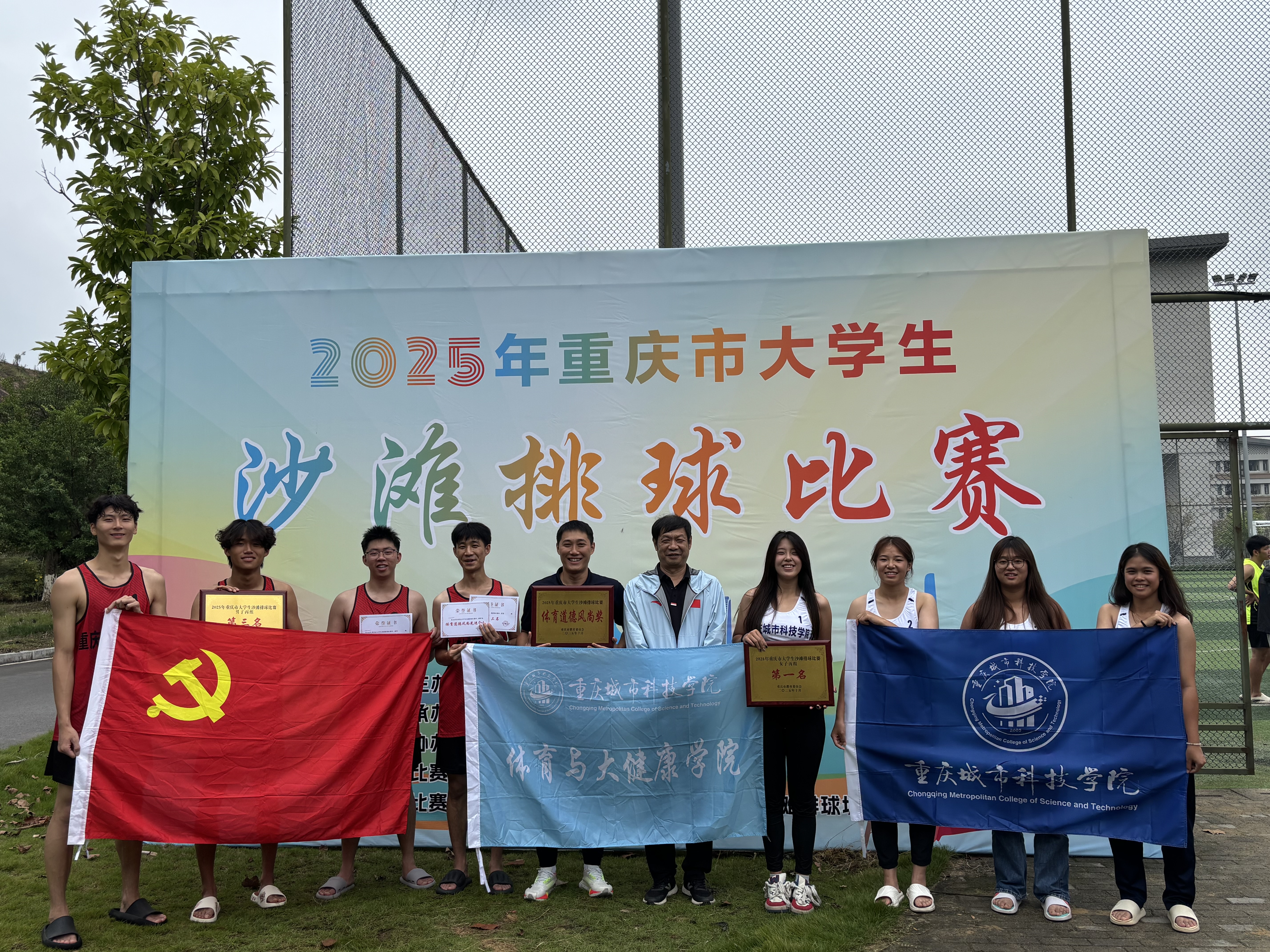 重庆市大学生沙滩排球比赛在激昂的呐喊声中圆满落幕,学校沙滩排球队在体育与大健康学院院长胡红、常务副院长邓文全的亲自带领和教练组的科学指导下。