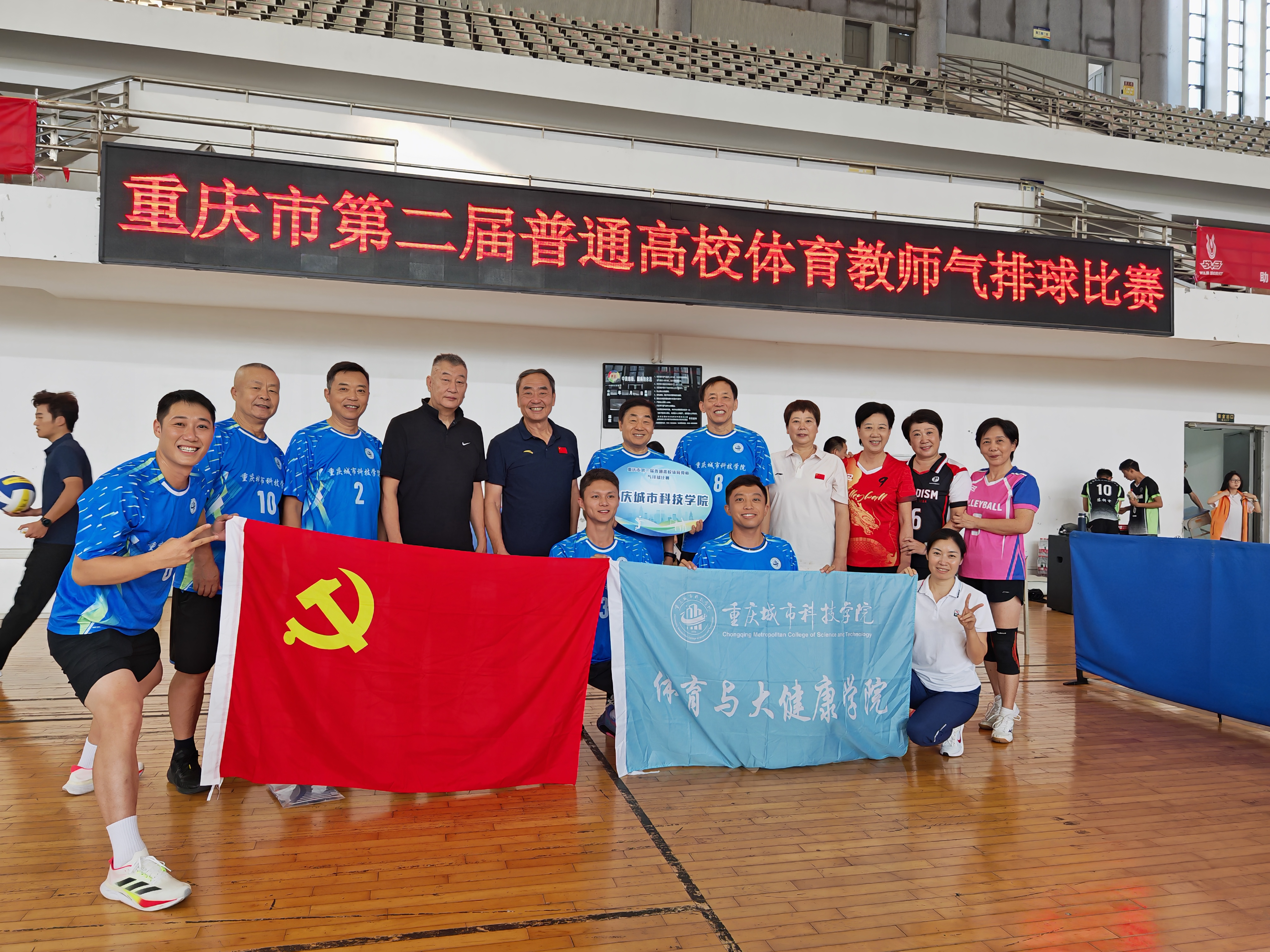 体育与大健康学院教职工用气排球划出优美弧线,重庆市第二届普通高校教职工气排球比赛圆满落幕,体育与大健康学院领导班子高度重视此次参赛工作,队员们利用课余时间加紧训练。