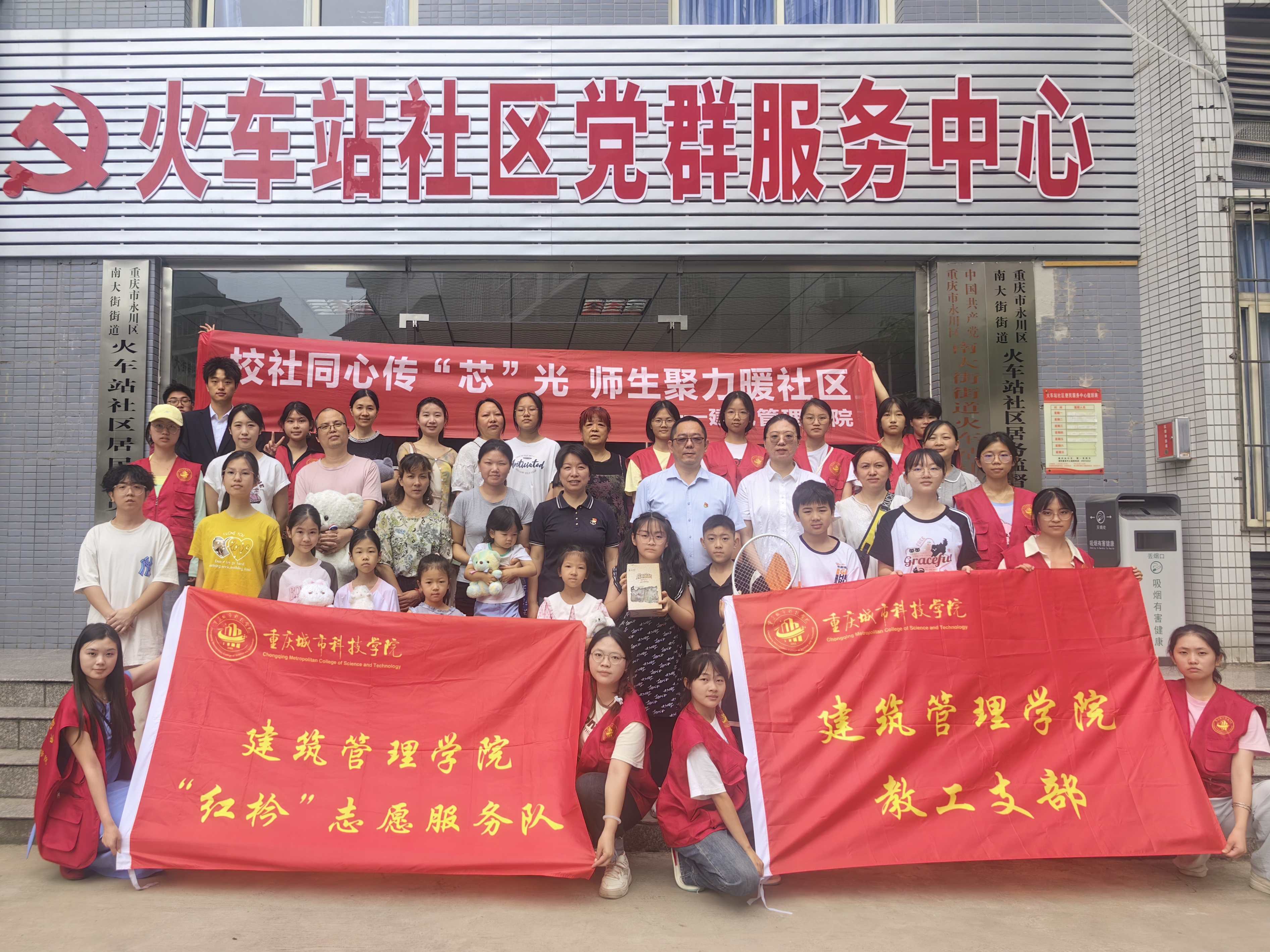 弘扬公益精神,建筑管理学院红枔师生党员志愿者带着“芯”光微公益爱心捐赠活动募集的300余件物资,来到永川区南大街火车站社区。