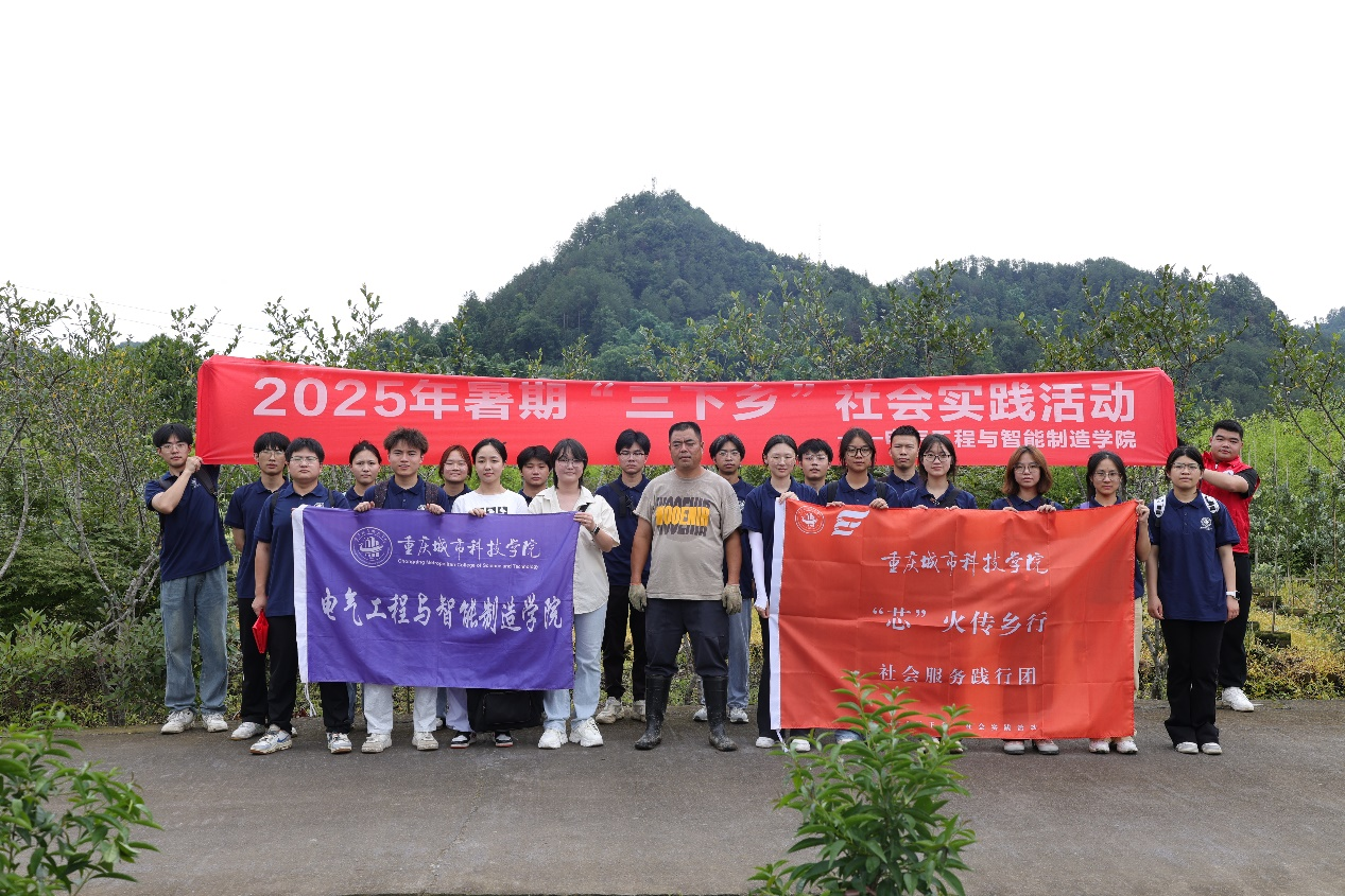 电气工程与智能制造学院团总支书记陈慧、团学指导老师何沁遥带领“三下乡”青年志愿服务队走进重庆市南川区白沙镇,当地村干部介绍花卉苗木园(李远阳)田间地头。