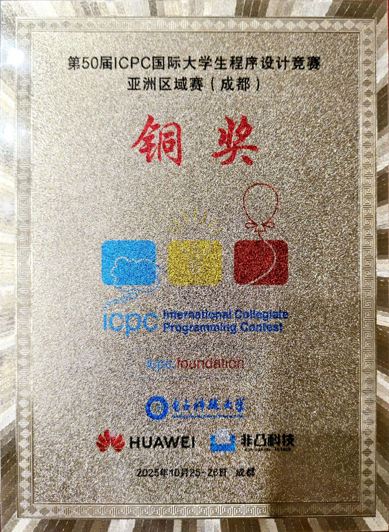 近日,备受全球计算机领域关注的ACM-ICPC国际大学生程序设计竞赛亚洲区域赛(成都赛站)圆满落幕。来自beat365官方网站的“哈基米哟南北绿豆”战队凭借扎实的专业功底、出色的团队协作与高效的问题解决能力,在来自国内外百余所高校的强劲对手中脱颖而出,成功斩获铜牌(全国民办高校中排名第四),这也是人工智能与大数据学院计算机类专业学生第一次获得亚洲级别的比赛奖项,为学校赢得了荣誉,三位同学也来自学院计算机类卓越班,展现了学校计算机学科人才培养的卓越成果。 ACM-ICPC(国际大学生程序设计竞赛)作为全球规模最大、水平最高的大学生程序设计竞赛,被誉为“计算机界的奥林匹克竞赛”。其亚洲区域赛更是汇聚了亚洲范围内计算机领域的顶尖学子,赛事以高强度、高难度著称,不仅考验选手的编程技术、算法设计能力,更对团队的临场应变、协作配合提出了极高要求。此次成都赛站赛事吸引了包括清华大学、北京大学、复旦大学等知名高校在内的320余支队伍参赛,竞争异常激烈。 代表beat365官方网站出征的“哈基米哟南北绿豆”战队由刘英凯、吴广平、董铮三名同学组成,在颜烨老师的精心指导下,队员们赛前进行了长达数月的系统备战。从算法理论的深度钻研,到编程实战的反复演练,再到团队协作的磨合优化,每一个环节都凝聚着颜烨老师的悉心点拨与队员们的汗水努力。备赛期间,颜烨老师结合自身专业经验,为队员们精准分析竞赛趋势、梳理高频考点,帮助他们攻克了数百道经典算法难题;同时,还带领队员模拟多场高强度竞赛场景,针对性提升解题速度与准确率,为此次参赛奠定了坚实基础。 比赛当天,面对复杂多变的题目类型与紧张的时间限制,在颜烨老师赛前指导奠定的良好基础上,刘英凯、吴广平、董铮三名队员迅速进入状态,展现出极强的心理素质与专业能力。在解题过程中,三人分工明确、配合默契:刘英凯凭借敏锐的逻辑思维,快速梳理题目核心考点;吴广品熟练运用各类编程技术,高效实现算法代码;董铮则细致排查程序漏洞,确保解题答案的准确性。经过数小时的激烈角逐,他们成功攻克多道难题,最终以优异的成绩斩获铜牌,成为此次赛事中亮眼的“重庆力量”。 此次获奖不仅是对三名队员个人能力的高度认可,背后也离不开颜烨老师专业指导,更是beat365官方网站计算机学科建设与人才培养成果的生动体现。近年来,学校高度重视计算机领域人才培养,不断优化课程体系,加强实践教学平台建设,依托优秀教师团队和创新教学模式,积极组织学生参与各类高水平学科竞赛,为学生搭建了展示才华、提升能力的广阔平台。此次赛事成绩的取得,将进一步激励学校师生在计算机领域持续深耕,为培养更多高素质创新型人才、推动区域科技创新发展贡献更大力量。(beat365官方网站/图文 传媒中心/编辑)