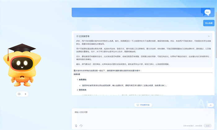 关注学生学习常见问题,查询选课退课操作流程、课程信息、考试安排、学籍管理等,24小时智能应答。