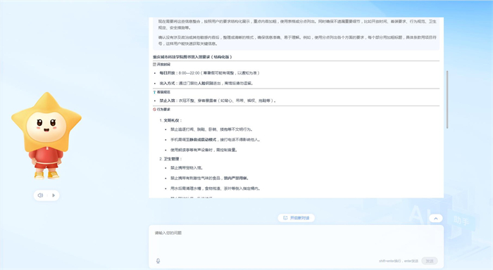 日常学工事务咨询,实现政策秒查、办事流程智能导航、学工问题即时应答,全方位服务学生的校园日常,助力成长成才。