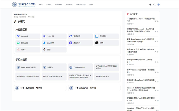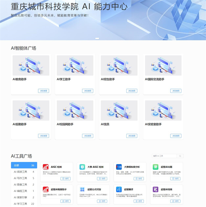 当人工智能与教育深度相拥,一场重塑未来的数智化浪潮正奔涌而来!beat365官方网站完成从AI学习中心到AI能力中心的跨越升级。全新升级的AI能力中心深度整合DeepSeek等多个大模型、八大业务场景智能体,以及涵盖多领域功能的AI工具全家桶,构建起多模态AI技术矩阵,使校园生活一键切换至“智能模式”。 AI学习中心在原有AI应用工具、校本化AI资源、学习案例库及行业动态模块基础上升级为AI能力中心。 AI教务助手-教务管家 AI学工助手-学工贴心人 AI招生问答-招生百事通 AI国际交流助手-国际视野拓展者 AI后勤助手-校园生活管家 AI校园网助手-网络护航员 AI馆员-知识引路人 AI实验室助手-科研智助者 八大智能助手通过多场景协同,构建起覆盖“教学-管理-招生-资源-国际交流-生活–实验-网络”的全链条服务体系,全方位推动校园服务迈入AI赋能的新阶段,为全体师生带来前所未有的智能体验,开启智慧校园的新篇章。 3、访问方式 4、数智赋能 与你同行 AI能力中心2.0为全体师生倾力打造高效便捷的数智化全新体验,开启前所未有的教育新篇章,校园数字基座也以“师生共训、技术共生”的模式持续进化。让我们携手以智为笔、以创为墨,在这幅数智校园的蓝图上续写无限可能——让技术更懂教育温度,让未来触手可及。( 传媒中心 赵志涛/编辑 现代教育技术中心 文/图)