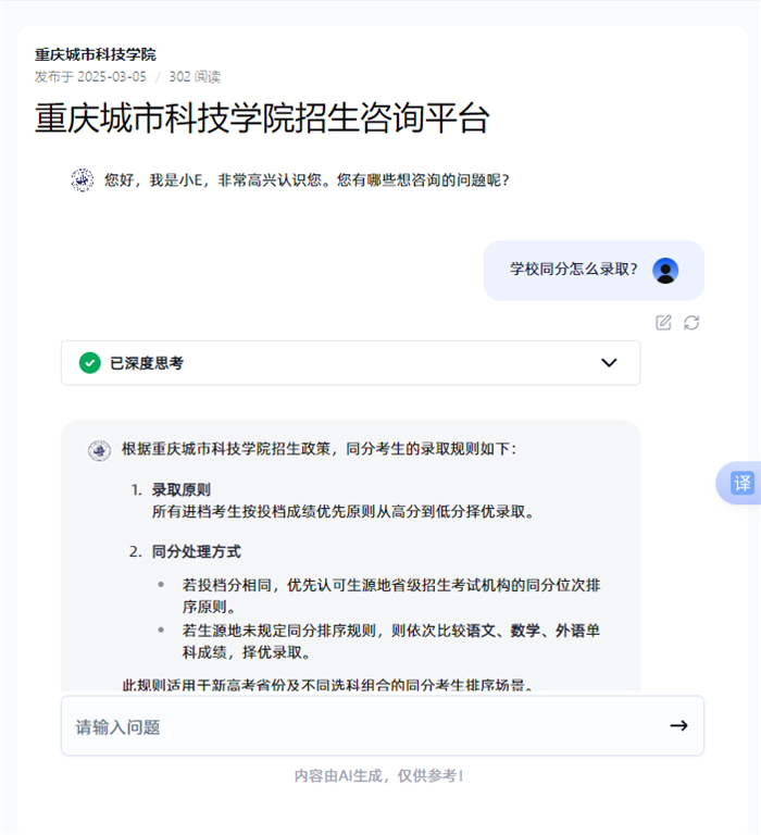 原AI学习中心智能deepseek智城助手、城科小E 2个智能体于2025年5月底前停止服务。