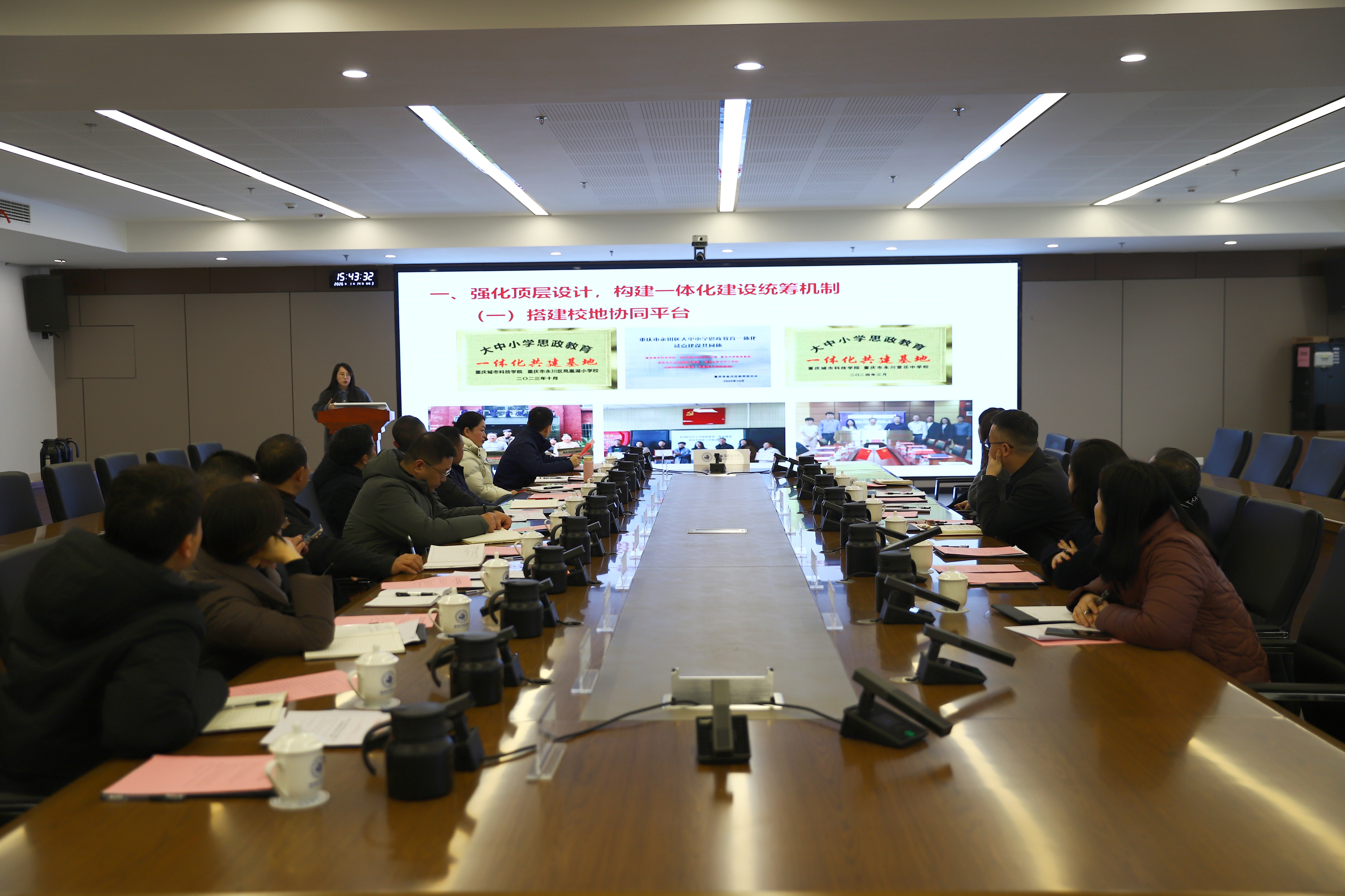 为扎实推进大中小学思政课一体化共同体建设。1月14日,巴南区大中小学思政课一体化共同体(第八组)建设工作推进会在beat365官方网站巴南校区召开。会议旨在凝聚共识、协同发力,共同探索大中小学思政课一体化共同体建设的有效路径与创新机制。 会前,与会人员参观了学校巴南校区的实验室、实践平台及校园环境,实地感受了校区在硬件设施、教学资源与育人文化方面的建设成效,为后续跨学段资源融合与协作奠定了直观基础。 会上,学校马克思主义学院副院长张沙沙系统汇报了学院在大思政课一体化建设方面的规划与实践。重点介绍了在课程体系创新、实践教学拓展、数字化资源开发及区域支持举措等方面的探索与成果,展现了牵头单位推动一体化建设的责任与行动。 在交流研讨环节,各成员单位负责人围绕共同体建设的机制创新、课程衔接、资源共享、师资共育等核心议题展开讨论。大家结合本校实际分享了思政课教学改革、特色活动开展等方面的经验,并就一体化进程中的难点与对策提出了建设性意见。通过深入交流,进一步明确了下一步协作的重点方向与具体任务。 学校马克思主义学院院长段吉福在研讨发言中表示,推进大中小学思政课一体化共同体建设是一项需要持续投入的系统工程,马克思主义学院将在学校的整体部署下,积极落实本次会议形成的共识,并与各成员单位深化协作,共同致力于构建层次衔接、资源共享的区域思政育人新格局,切实提升育人实效。 学校校长助理、巴南校区管委会党工委书记、常务副主任崔继昌在会上交流了推进思政课一体化共同体建设的思考。他强调,大中小学思政课一体化共同体建设需要全体成员协同发力,并就资源共享、师资共育、品牌共创、难题共解四个方面提出了合作方向。他表示,作为牵头单位,学校将全力做好支持与服务,与各成员单位共同推动共同体建设走深走实。 此次推进会的召开,为大中小学思政课一体化共同体建设凝聚了共识、明确了路径。下一步,各成员单位将持续深化联动,夯实协作机制,努力推动思政教育在各学段有效衔接、层层递进,为培养担当民族复兴大任的时代新人贡献力量。(邹岷骏 张嘉 魏守能 吴浚绮/图片 传媒中心 胡乐怡/编辑)